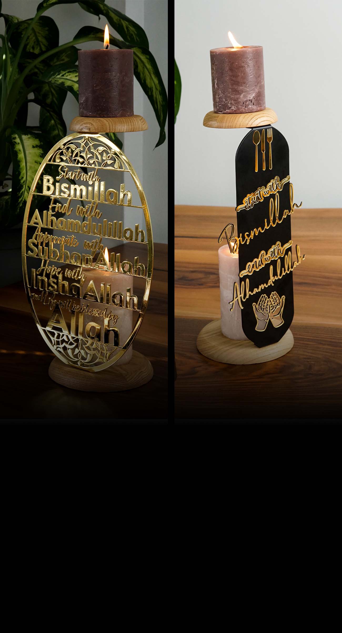 الكثير من قطعنا تحتوي على آيات قرآنية، أو أسماء الله الحسنى الـ 99، أو خطوط إسلامية أخرى تذكرنا بإيماننا باستمرار.