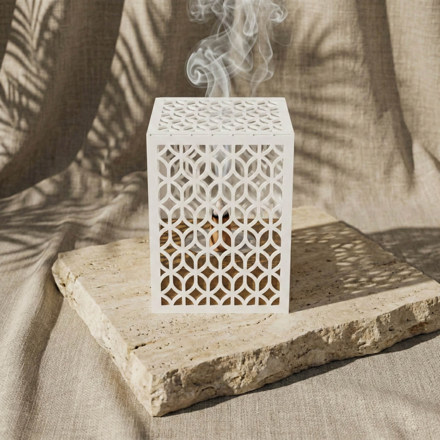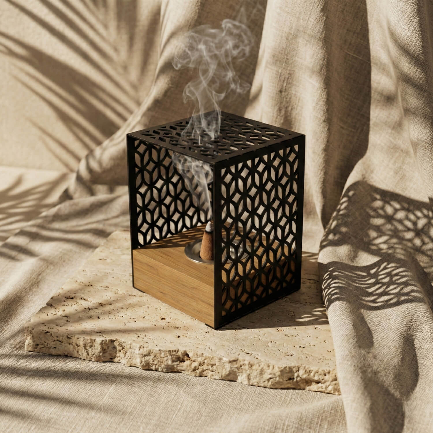 The elevated metal design is engineered for optimal airflow, allowing the scent to gracefully fill your room. Whether placed in your prayer corner or on your **ramadan dining tables**, this burner provides a secure and stylish way to engage in the remembrance of **Allah (SWT)** through the Sunnah of fragrance.