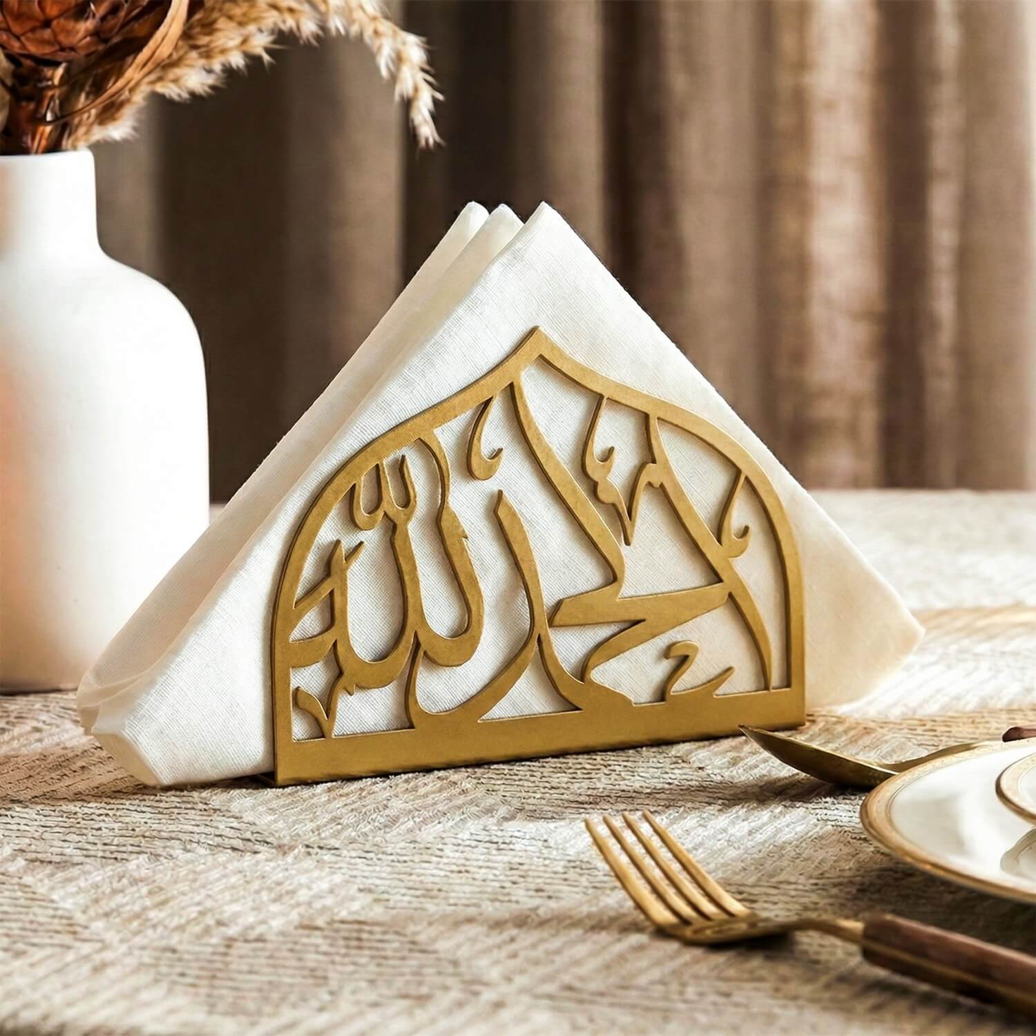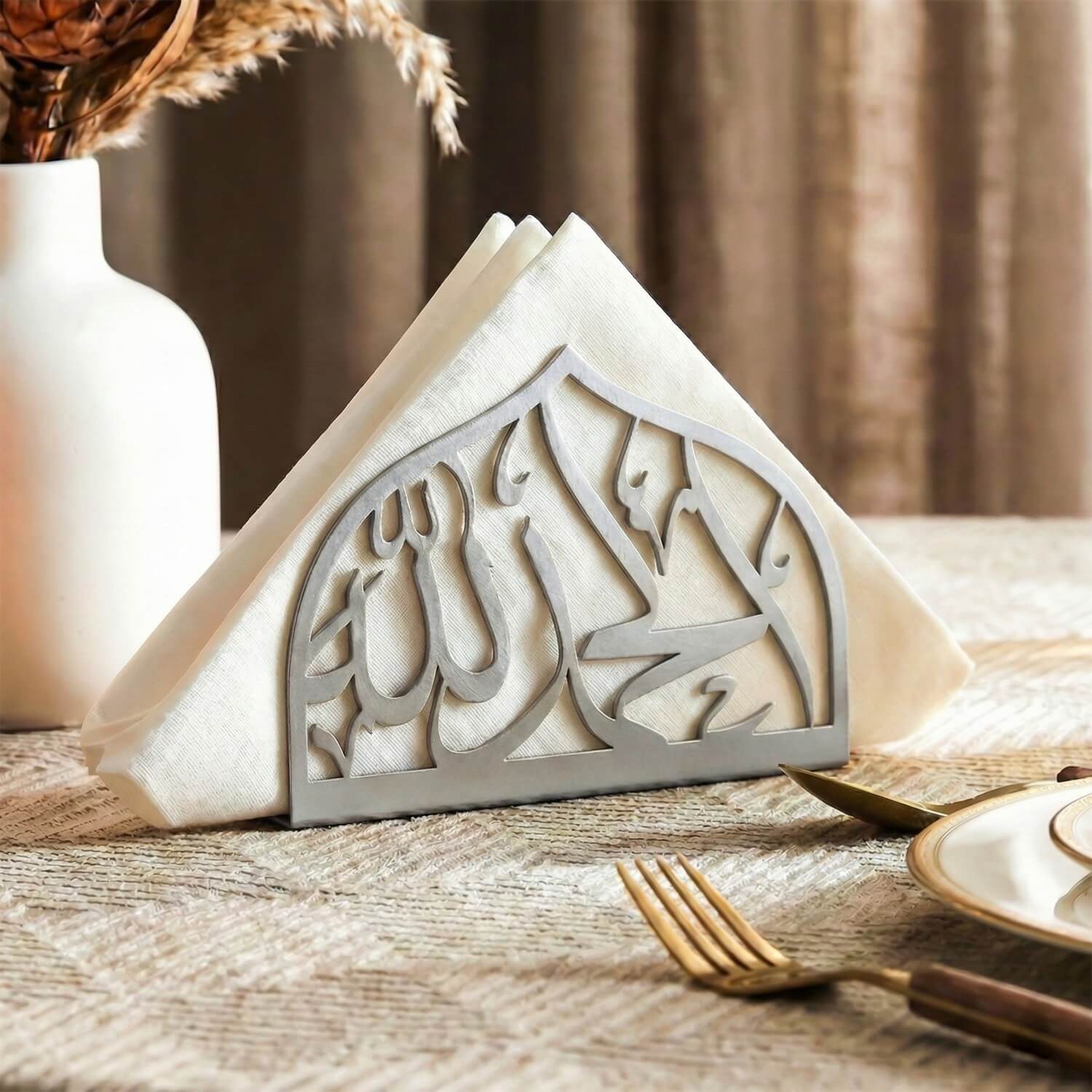 Elevate your dining experience with our **Bismillah& Alhamdulillah Napkin Holder**. This skillfully crafted metal stand features **two distinct side panels**, each displaying a powerful phrase of gratitude and praise.
