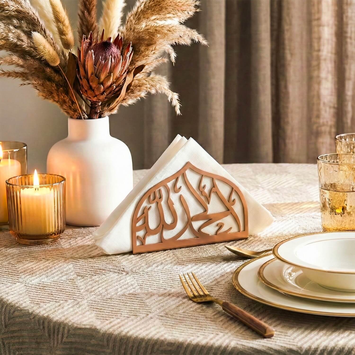 One side features the calligraphy for **"Bismillah"** , while the opposite side displays **"Alhamdulillah"**. This unique dual-design allows you to view a meaningful reminder from any angle on your table, making every meal a moment of reflection.