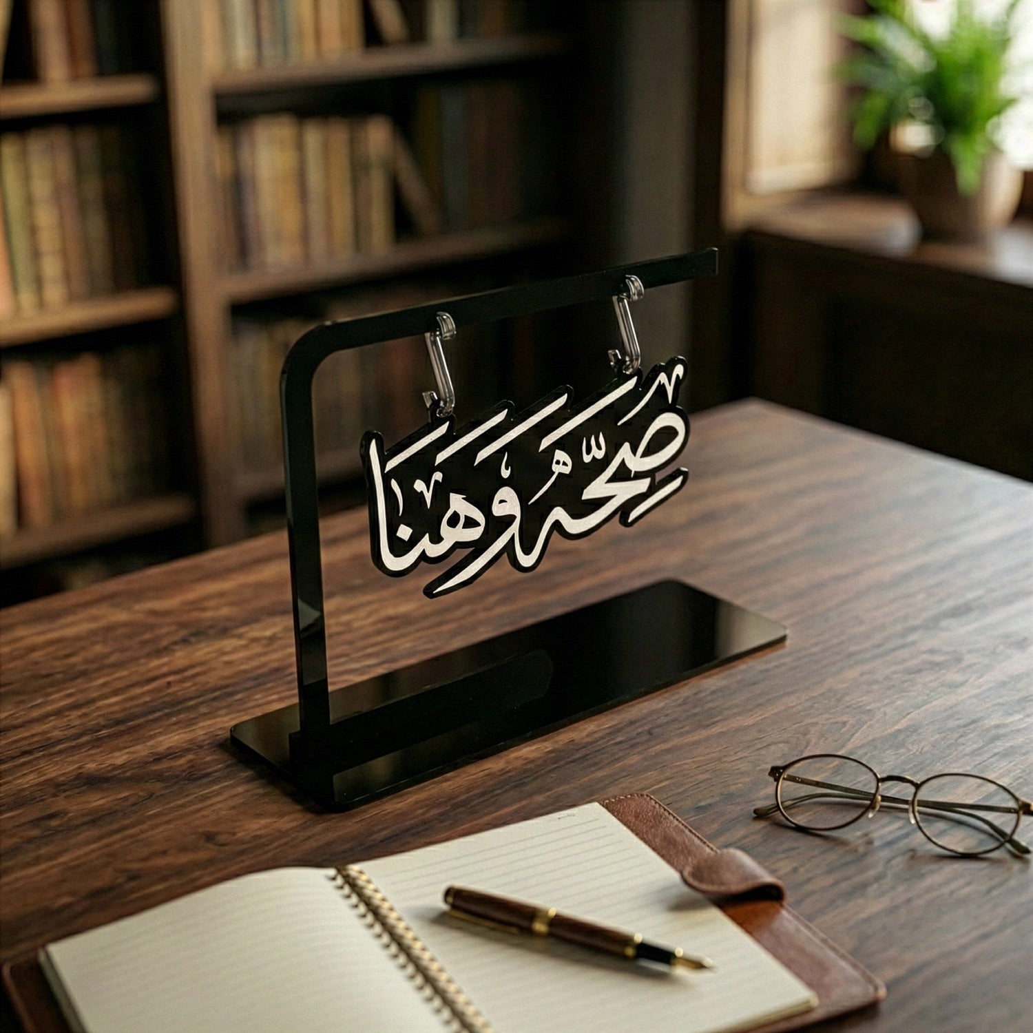 Saha w Hana Shaped Calligraphy Stand – Elegant Ramadan Decor & Iftar Table Centerpiece