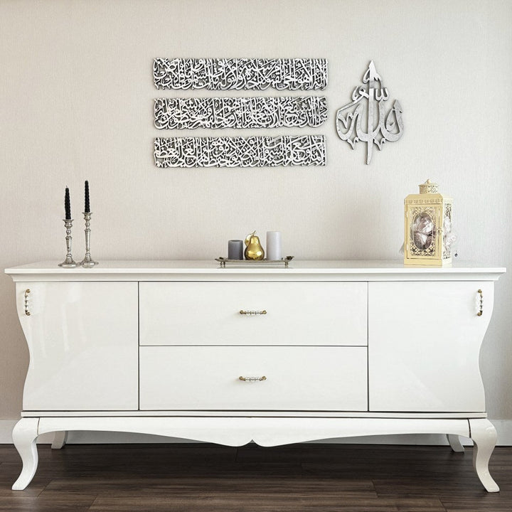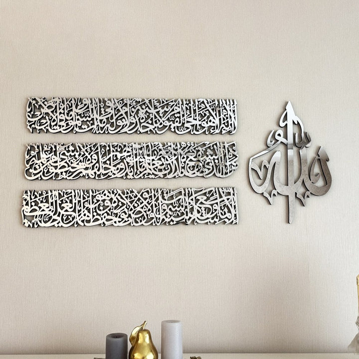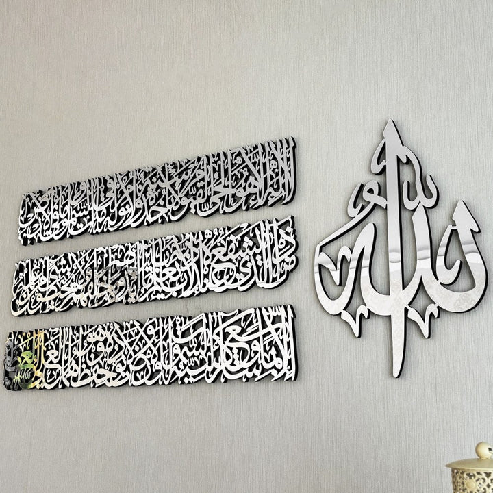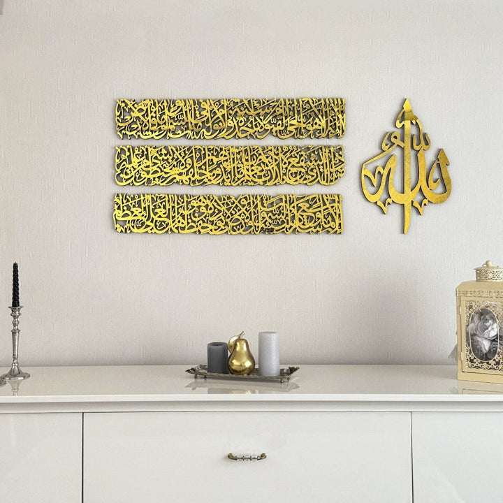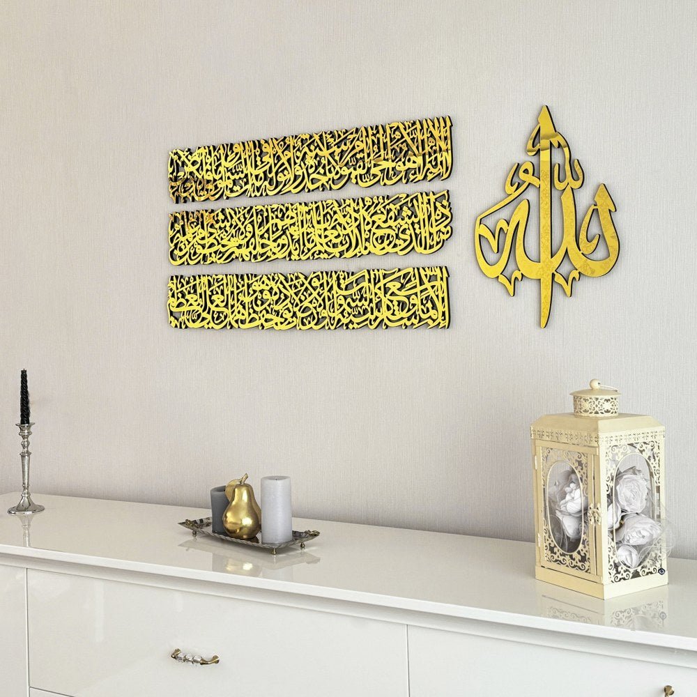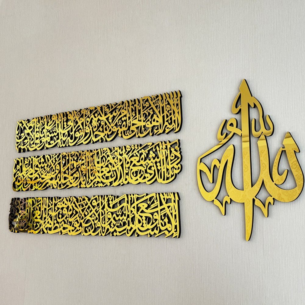 فن الخط العربي لآية الكرسي على الحائط: مجموعة من 4 قطع خشبية وأكريليك للأناقة الإسلامية الحديثة
