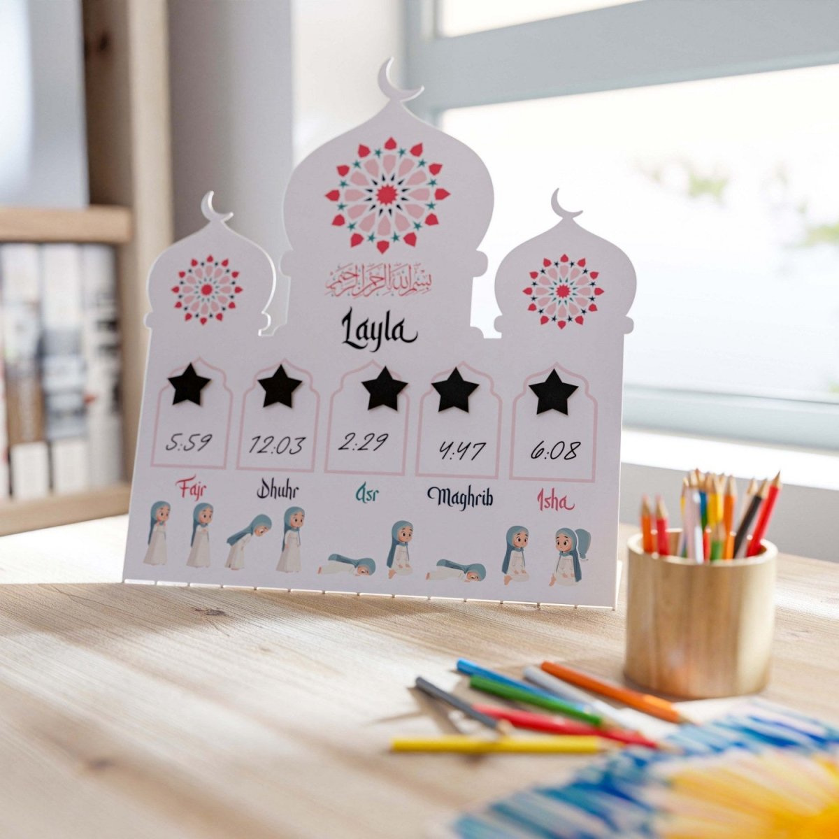 شجع أطفالك على الالتزام بصلواتهم اليومية مع هذا الديكور الفريد لجدول الصلاة للأطفال.