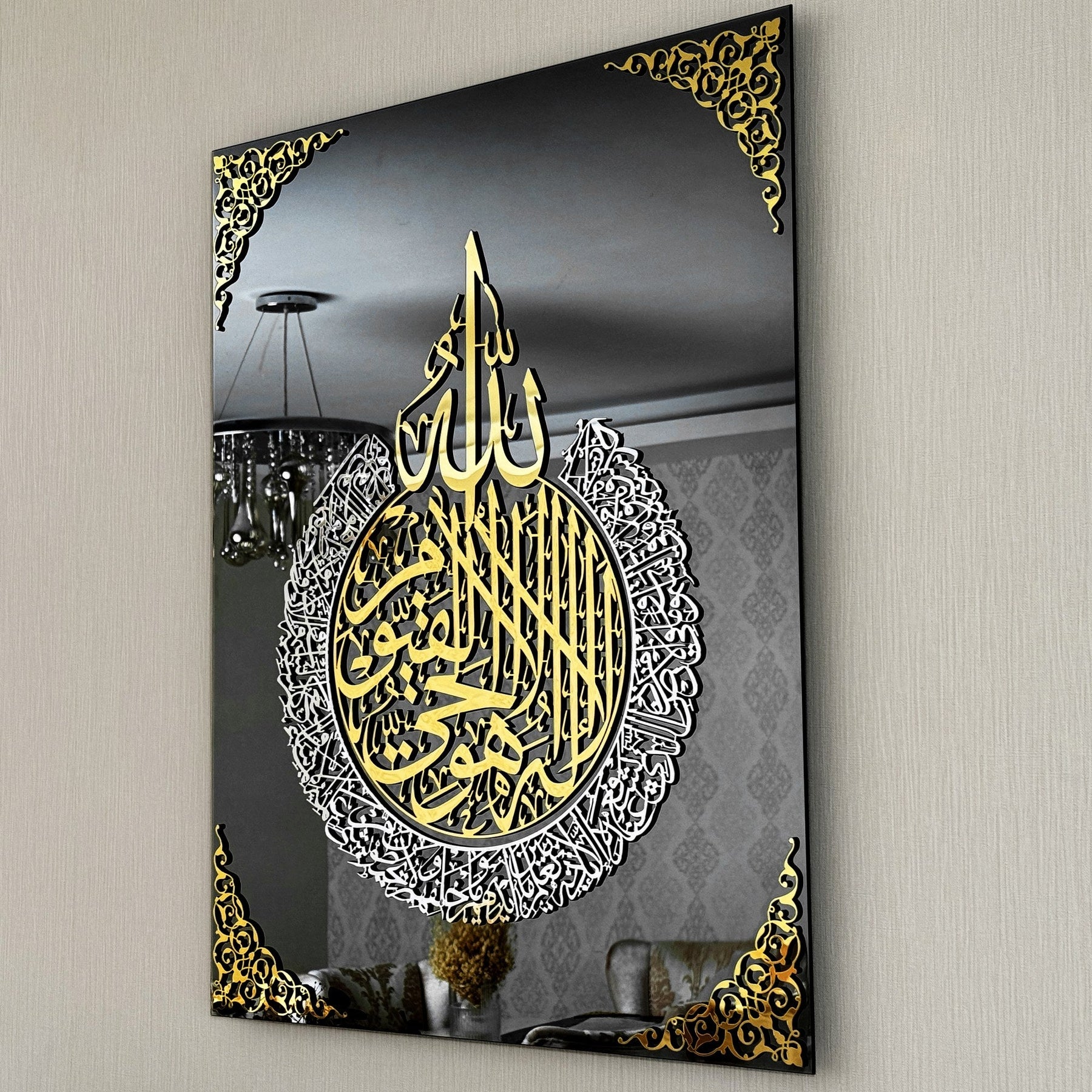 This exquisite piece intertwines the profound story of the Ayatul Kursi verse, a symbol of protection and faith in Islamic culture, with the elegance of modern Islamic calligraphy. Ideal as Ramadan decor, this artful rendition is perfect for adding a touch of divine inspiration to any space, becoming a must-have for those who cherish Islamic home decor and the timeless beauty of Quran wall art.