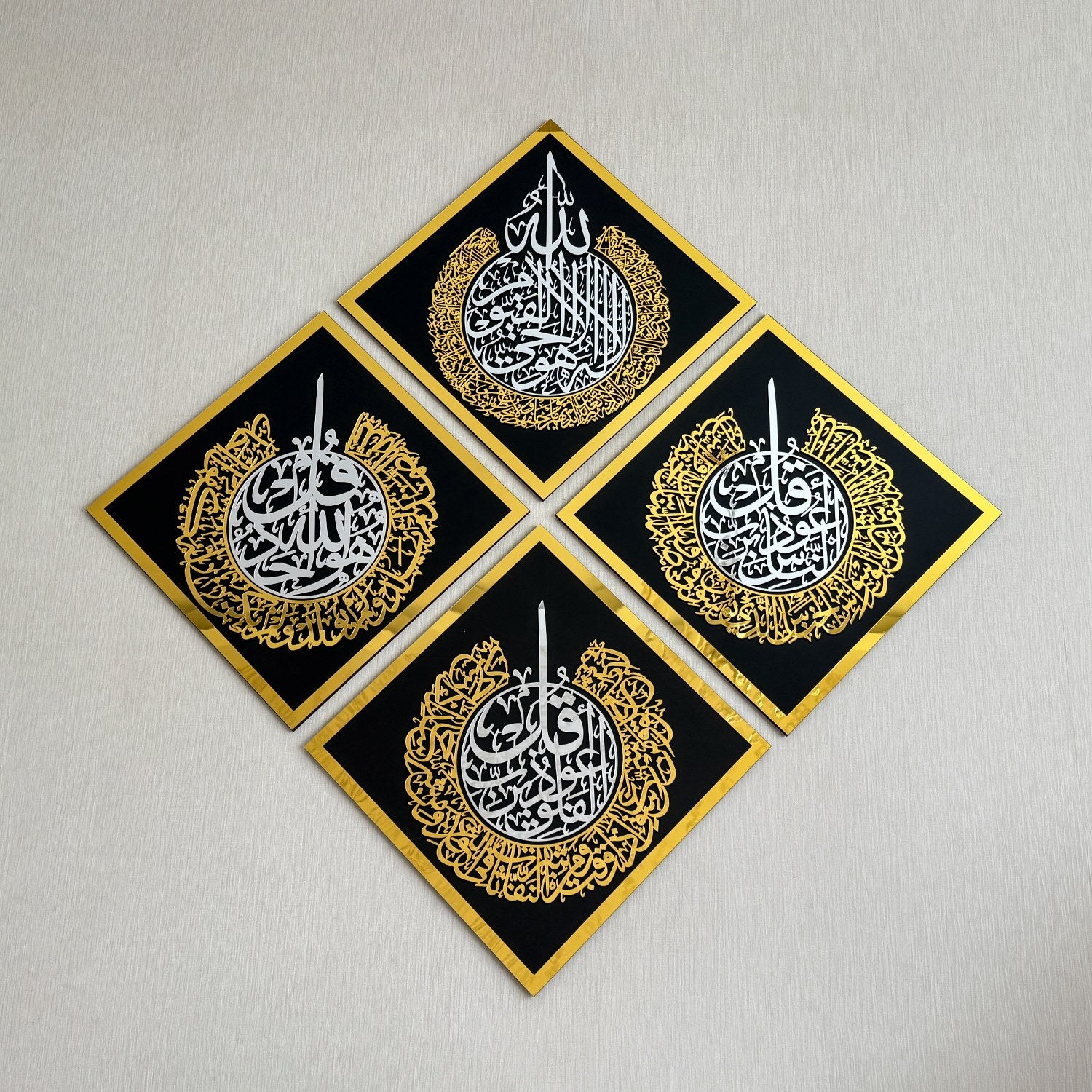 Set of Ayatul Kursi, Surah Ikhlas, Surah Al Falaq and Nas Wooden Islamic Wall Art