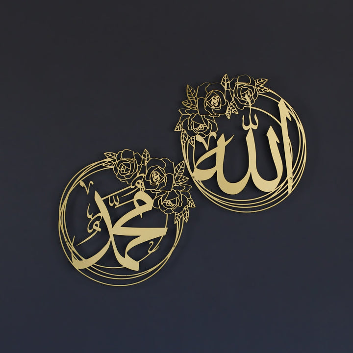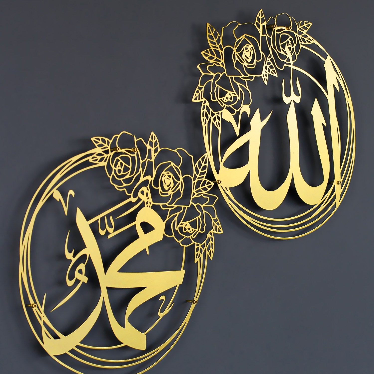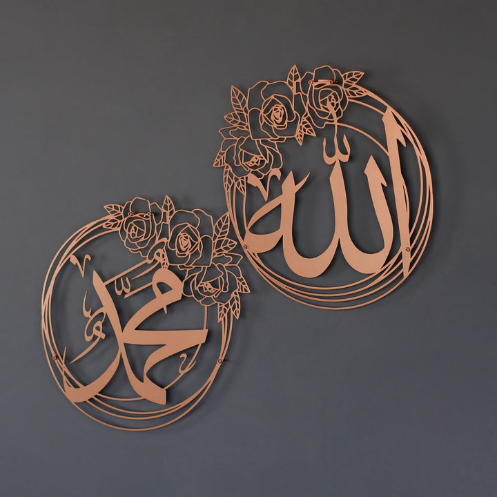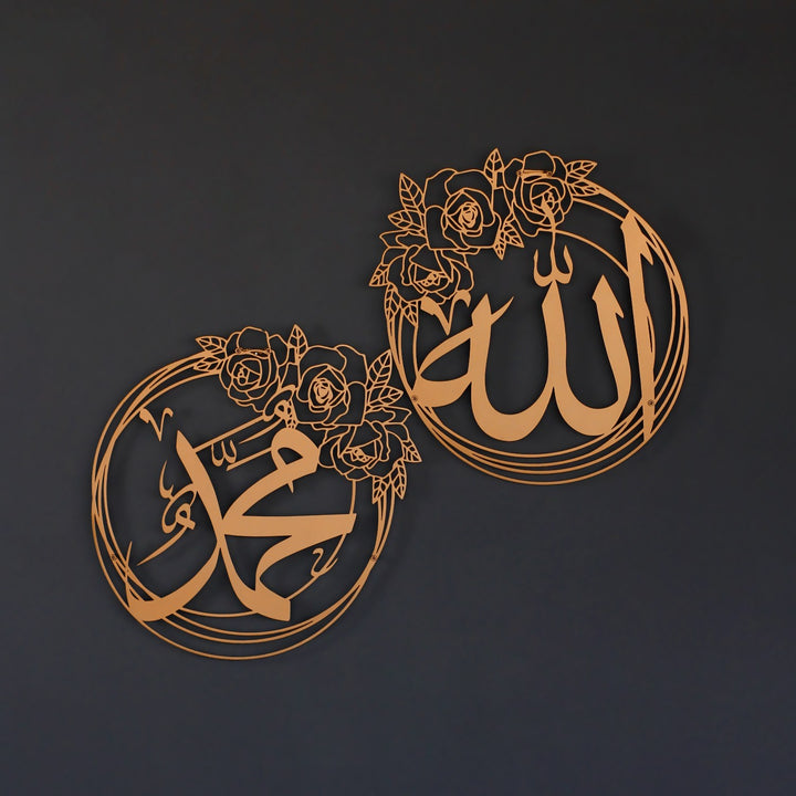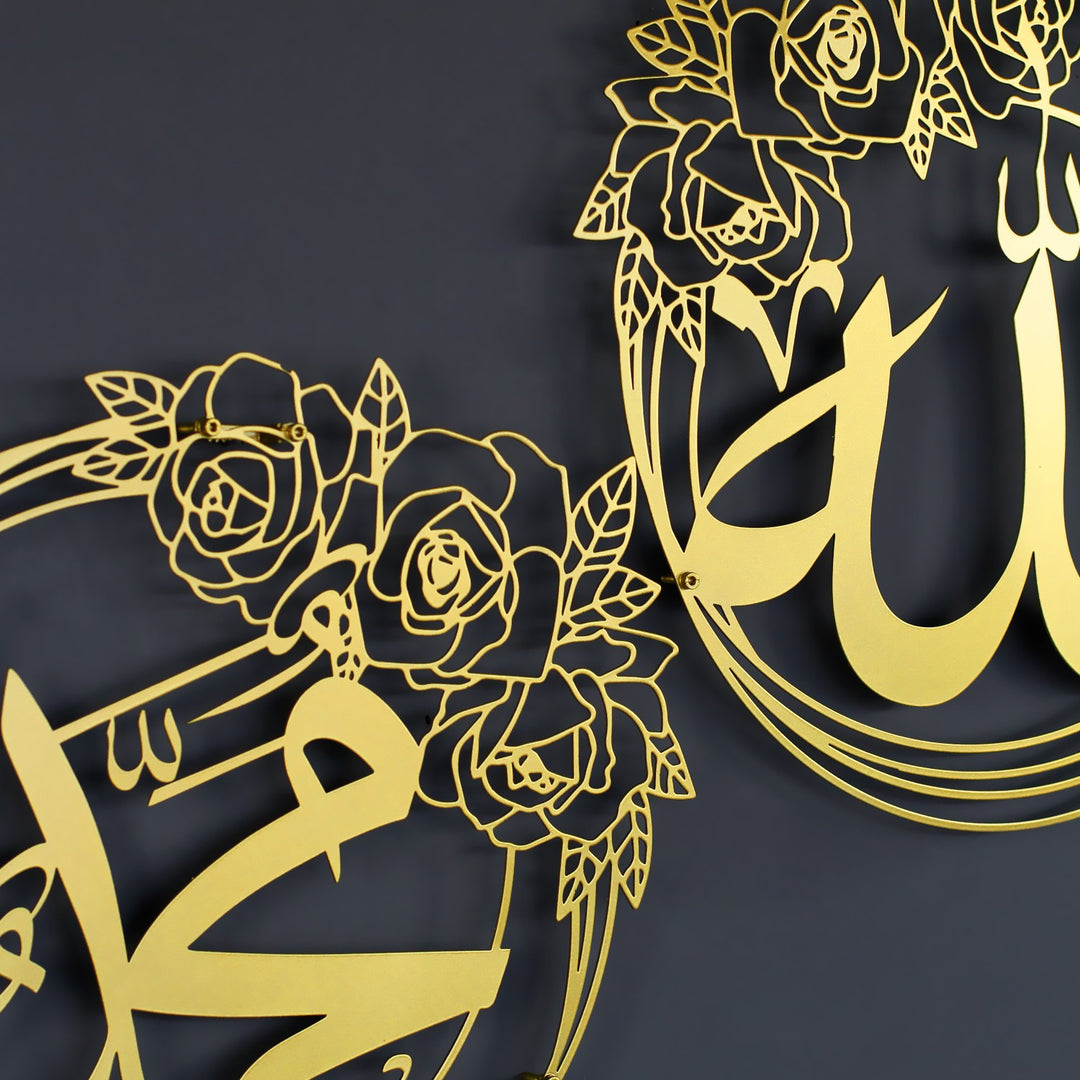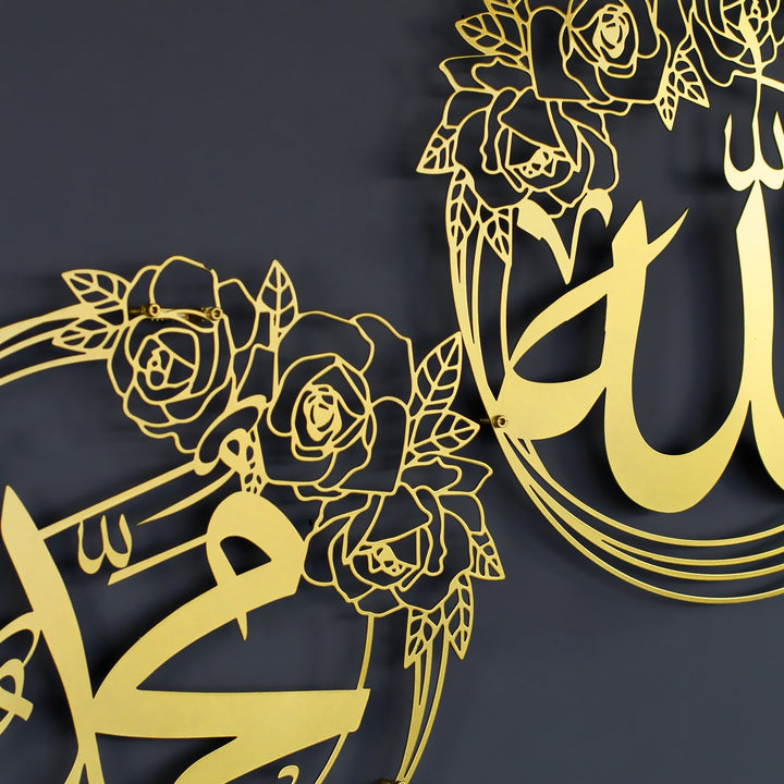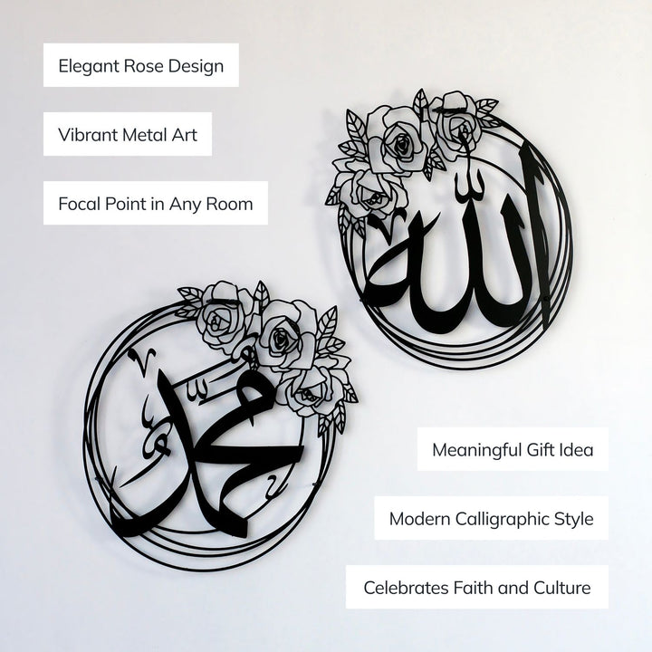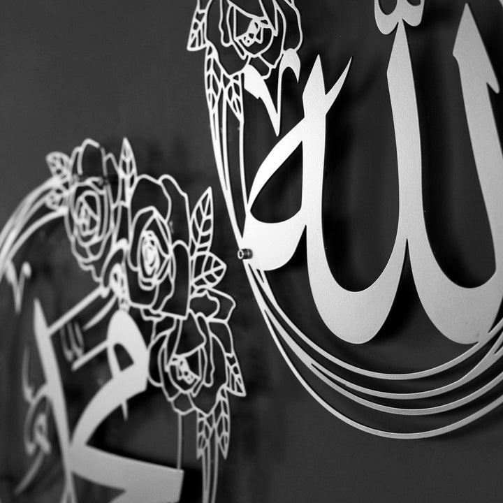 Allah (SWT) & Muhammad (PBUH) - Metal Islamic Wall Art, Rose Design