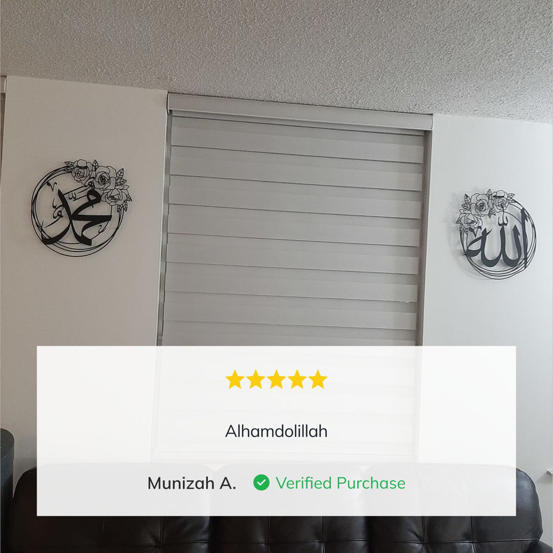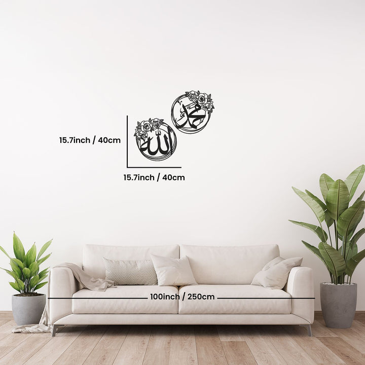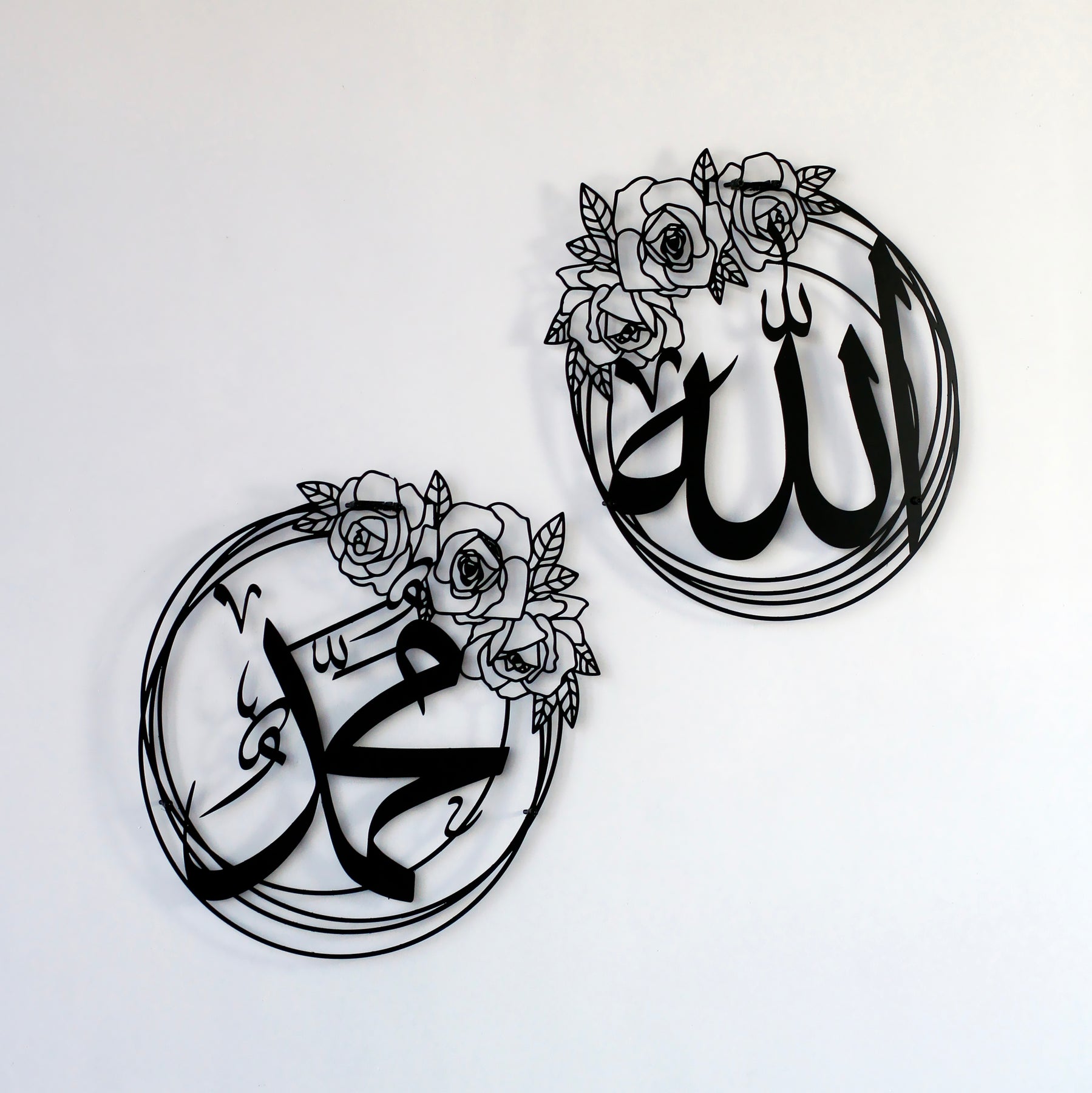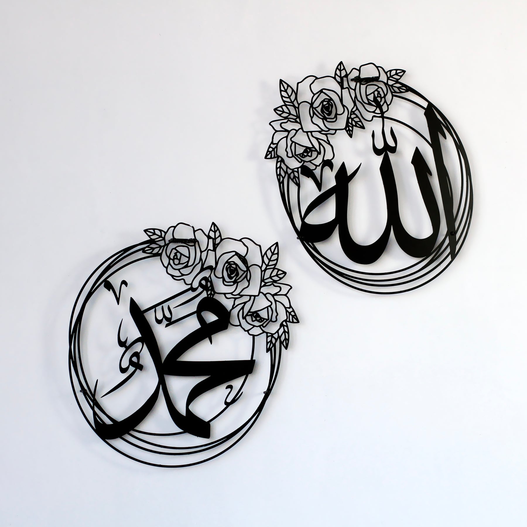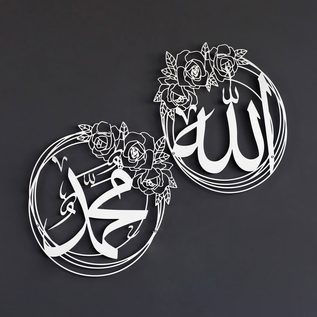 Allah (SWT) & Muhammad (PBUH) - Metal Islamic Wall Art, Rose Design