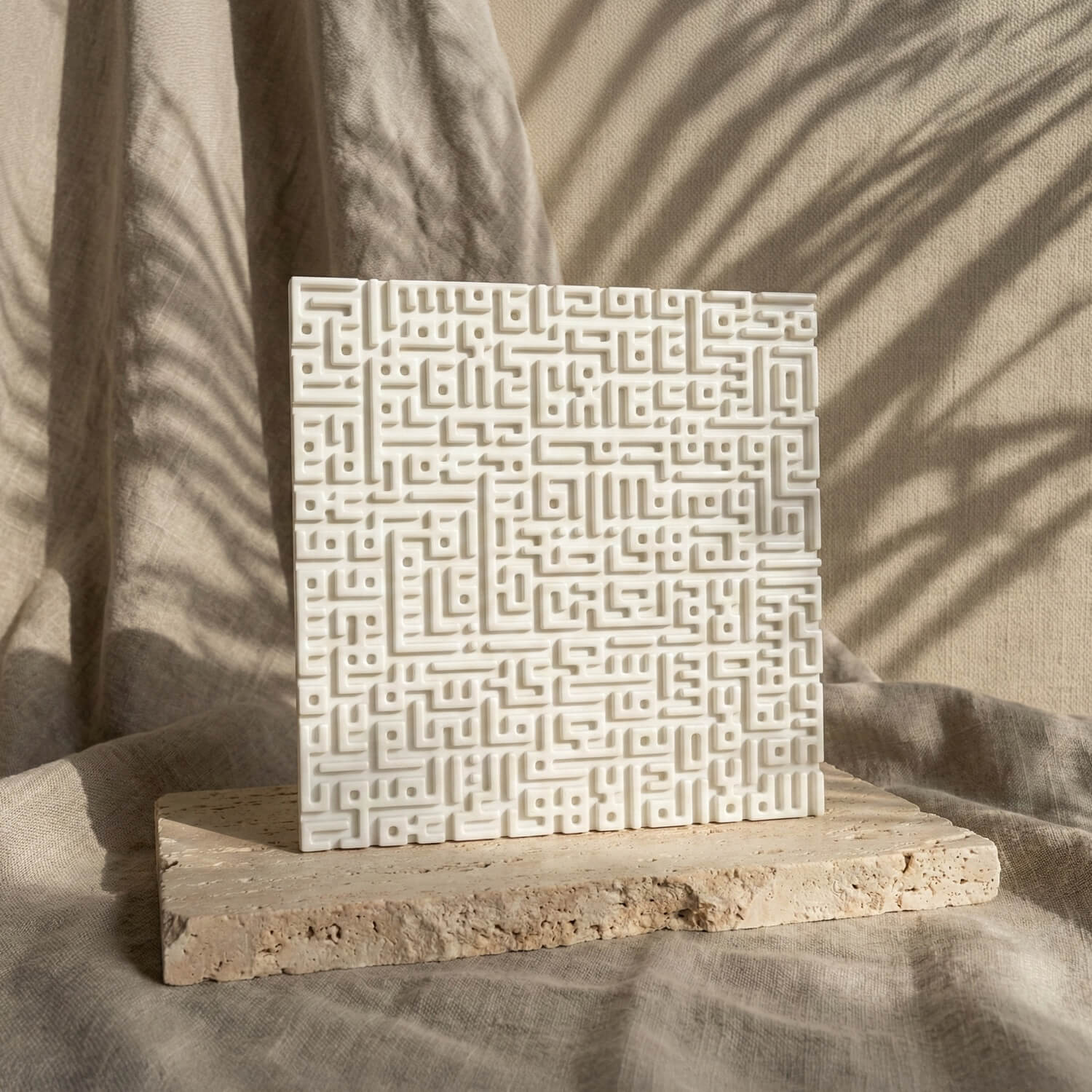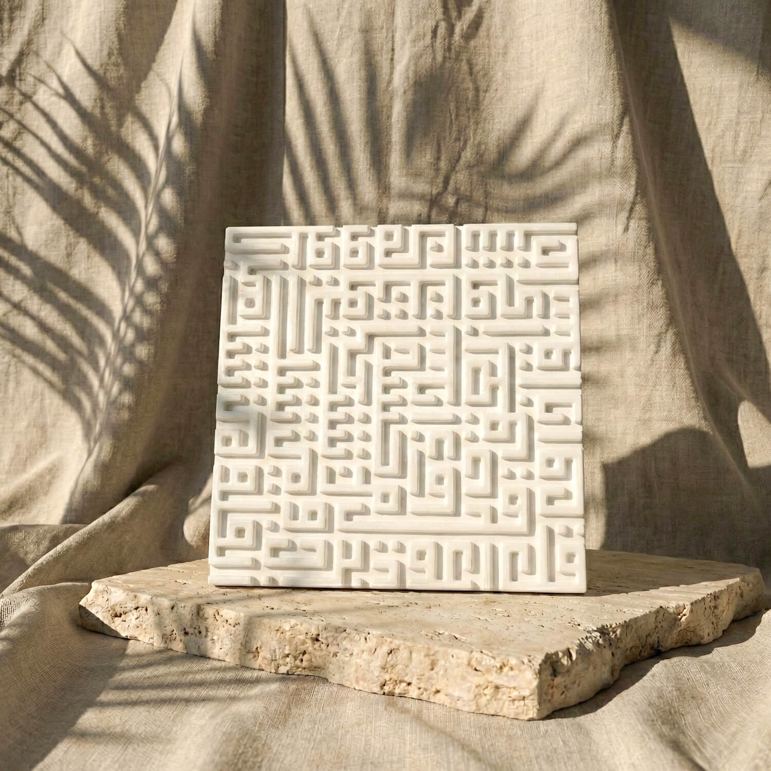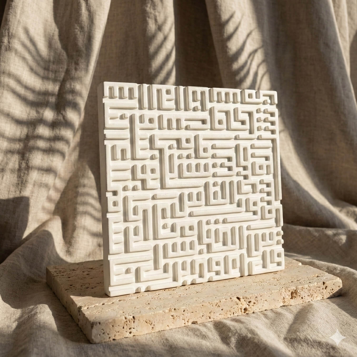 Transform your space with this Set of 3 Kufic Stone Blocks, a premium collection of modern Islamic Home Decor. Hand-cast from a solid blend of stone dust and concrete, these pieces feature the three most powerful verses of protection: Ayatul Kursi, Surah Al-Falaq, and Surah An-Nas.
