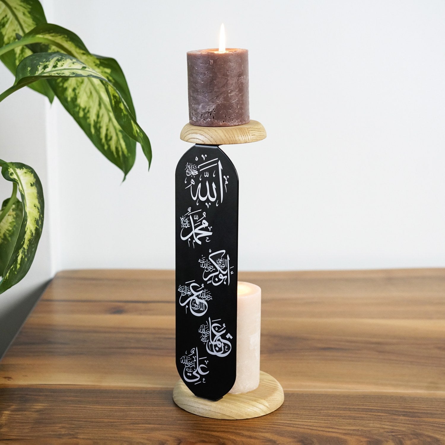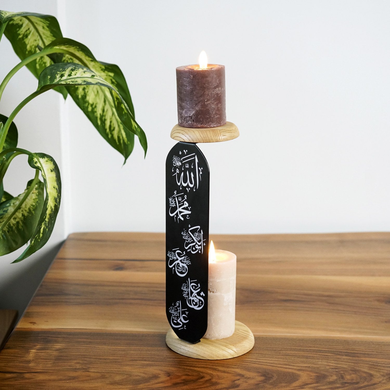 Islamic Candleholder - Allah (SWT) Muhammad (PBUH) Rashidun Caliphs | Muslim Home Decor