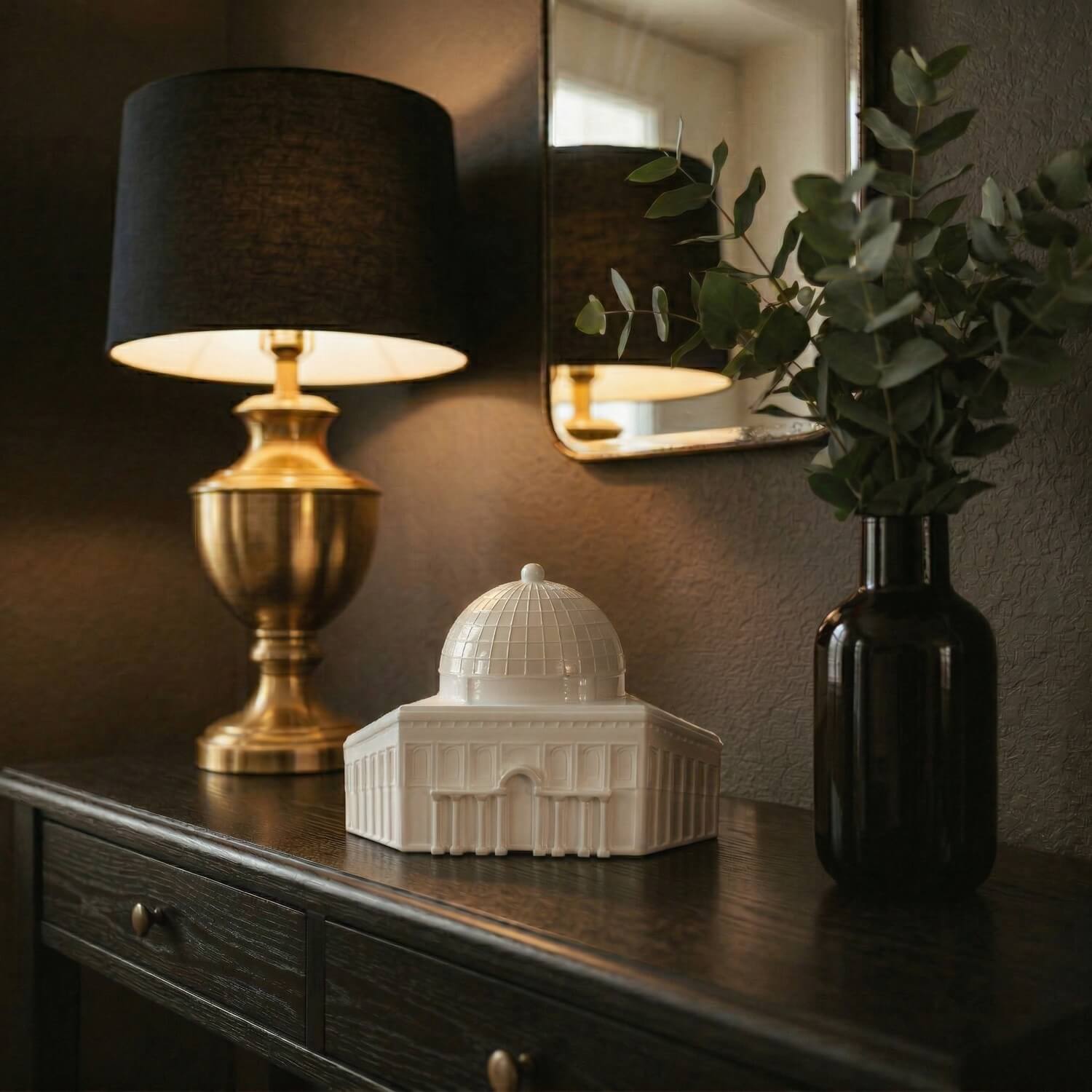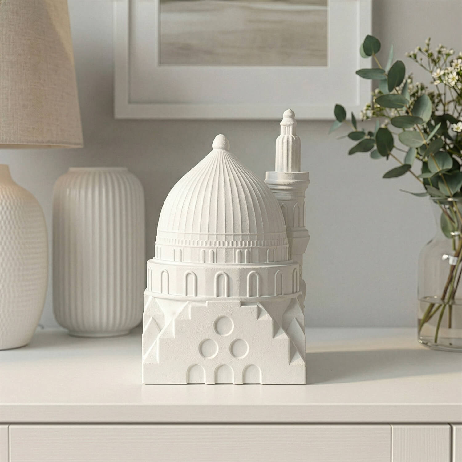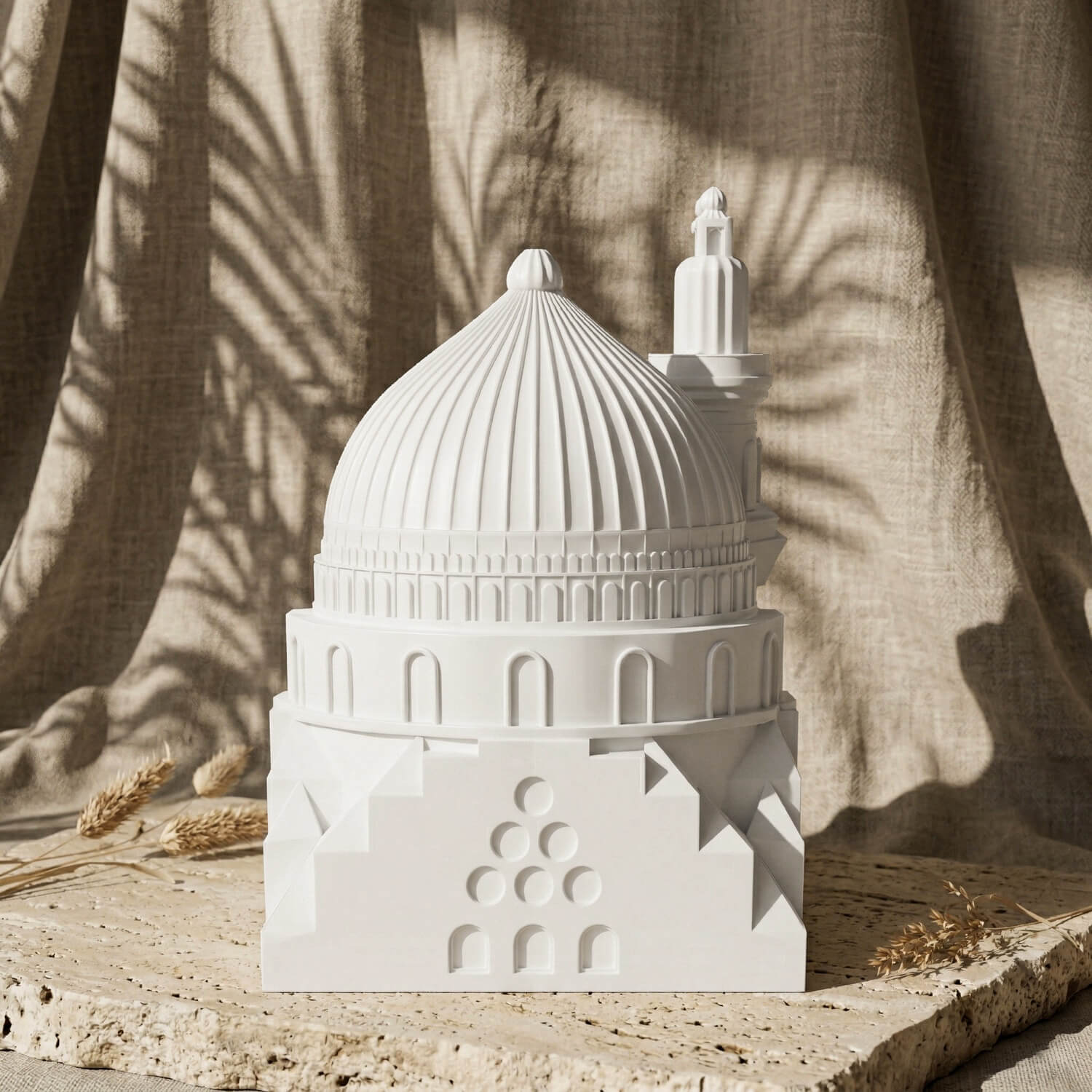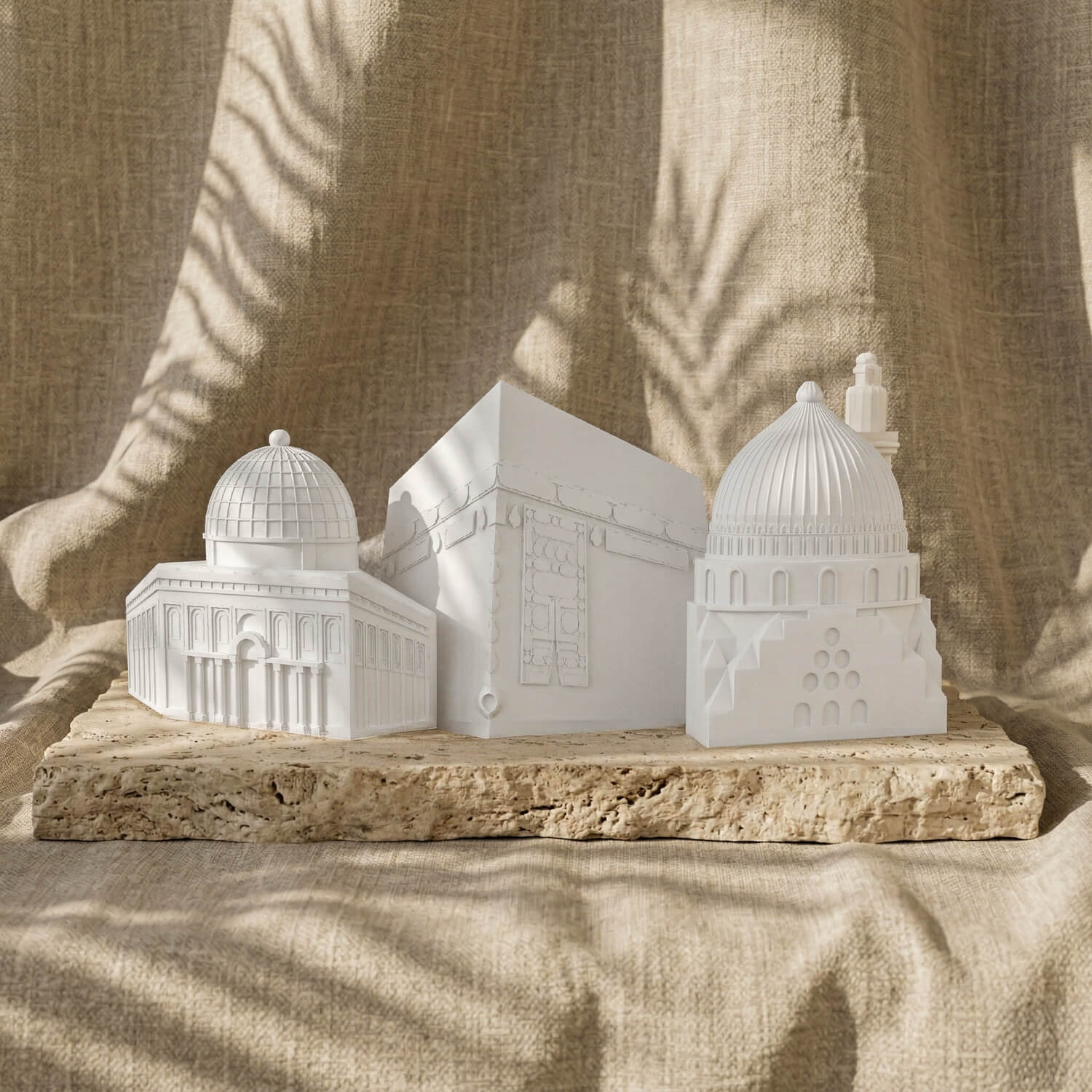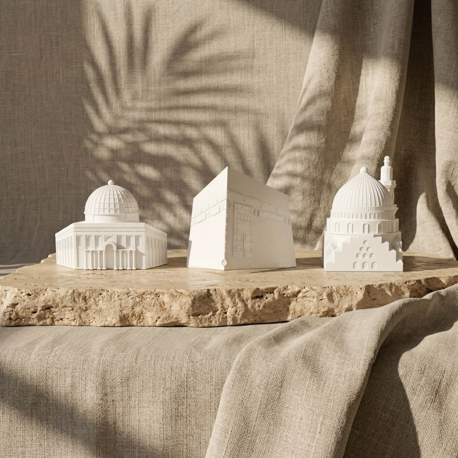 Perfect for your home, office, or as a meaningful gift, this collection brings the most revered sites of the Islamic world to life. Each piece is expertly crafted using a high-quality stone dust casting technique. This premium material not only provides a solid, weighty feel and exceptional durability but also captures the intricate, fine details of these holy sanctuaries flawlessly. You can choose to display the iconic Kaaba with its elegant detailing, the majestic Dome of the Rock (Masjid Al-Aqsa) with its radiant golden dome, and the serene Masjid Al-Nabawi with its signature green dome.