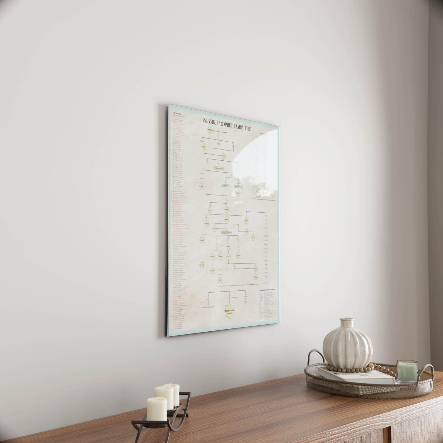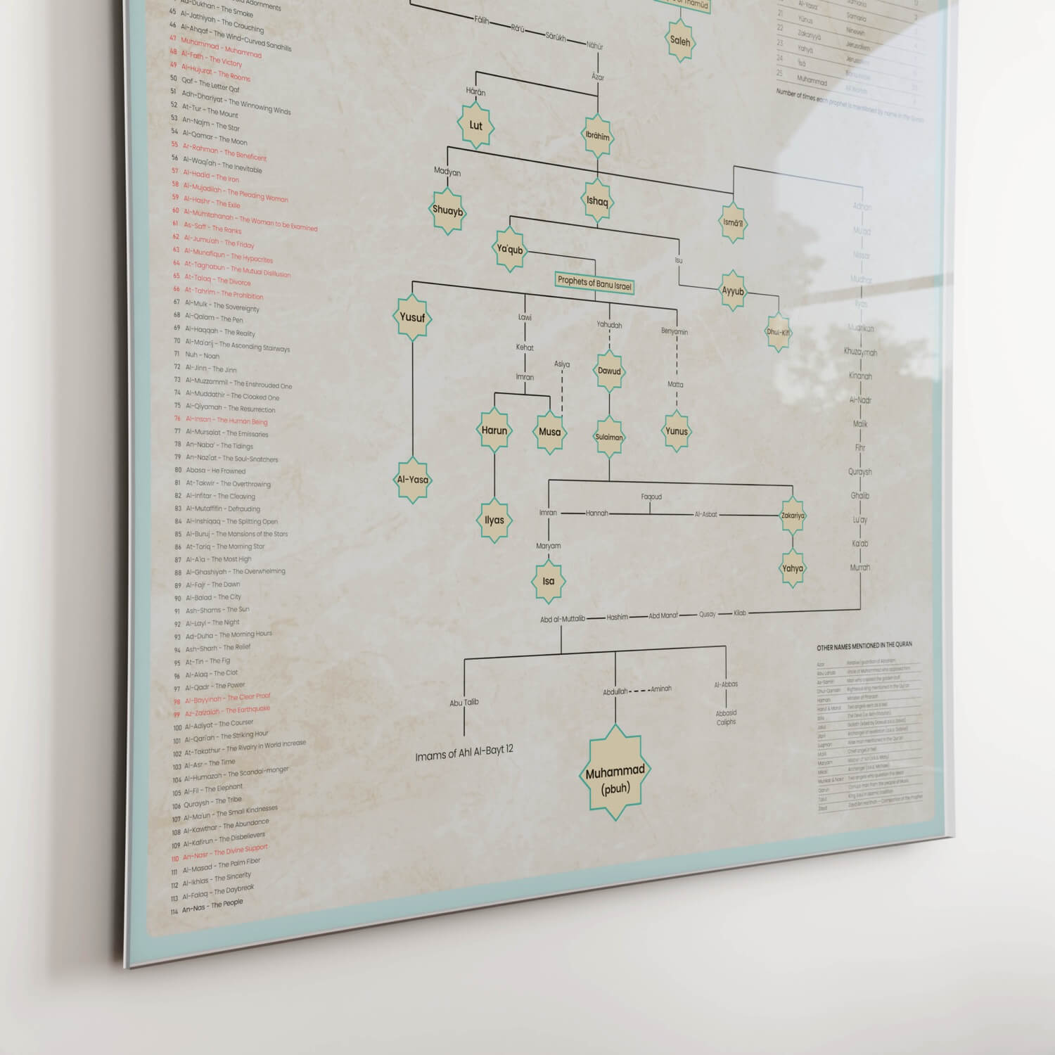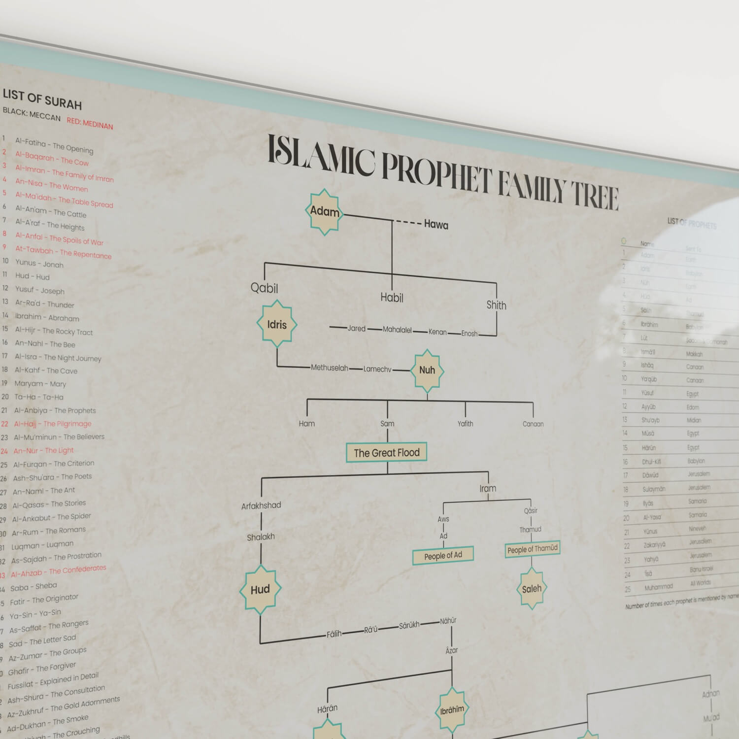 Discover the lineage of the Islamic prophets with this beautifully designed family tree poster. Perfect for educational purposes and Islamic home decor, this comprehensive genealogy chart traces the prophetic lineage from Adam (AS) to Prophet Muhammad (SAW).