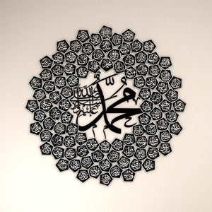 Das Nalain Shareef Dekor – Islamische Wandkunst aus Metall ist ein heiliges Stück, das die Fußabdrücke des Propheten Mohammed (Friede sei mit ihm) in seinen heiligen Sandalen symbolisiert. Das Kunstwerk fängt die spirituelle Essenz und Bedeutung der Na'layn (der Sandalen) und ihre tiefe Verbindung zum Erbe des Propheten ein. Dieses Metalldekor ist mehr als nur eine Dekoration; es erinnert eindringlich an das Leben des Propheten, seine Demut und seine Verbindung zum Göttlichen. Perfekt für jede islamische Wohnkultur , verleiht es Ihrem Wohnzimmer, Ihrer Küche oder Ihrem Gebetsraum einen Hauch von Ehrfurcht und Anmut. Dieses beeindruckende Stück ist auch ein hervorragendes muslimisches Geschenk für jeden Anlass.