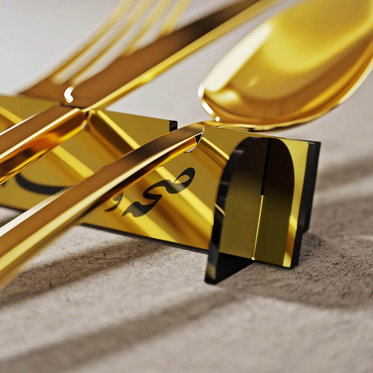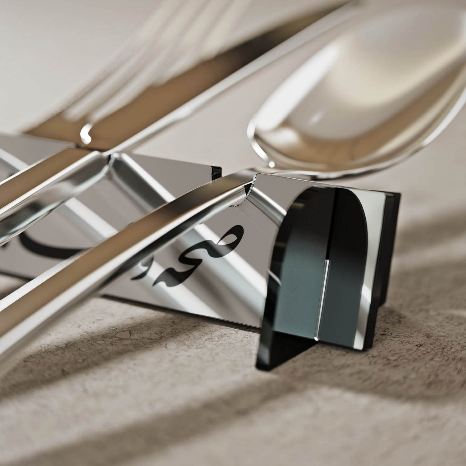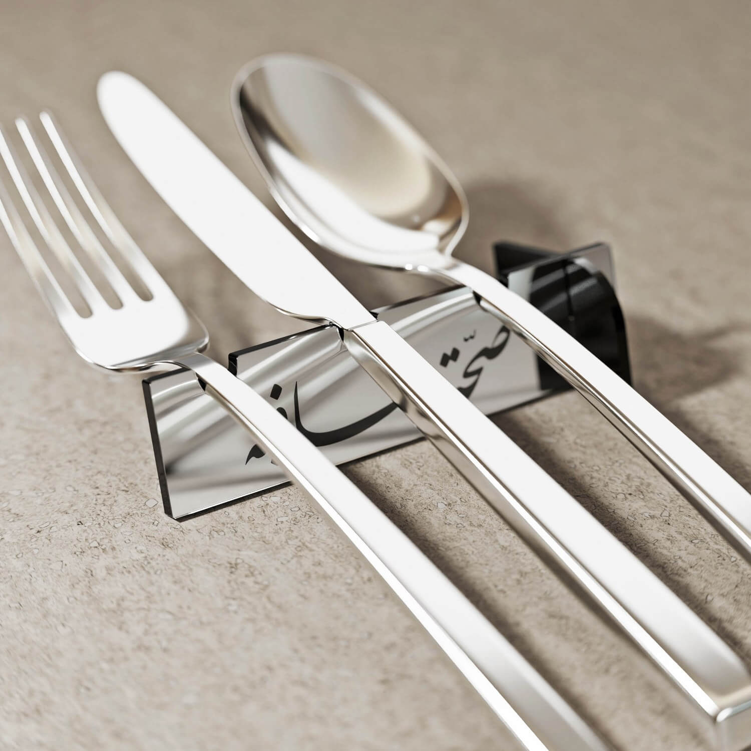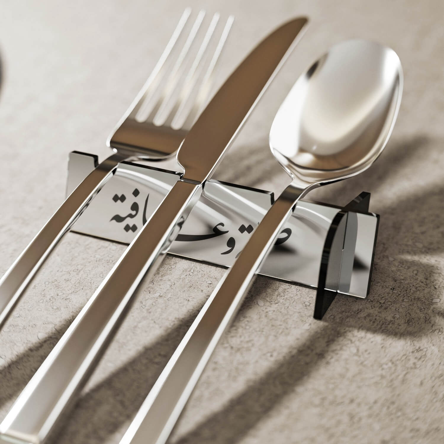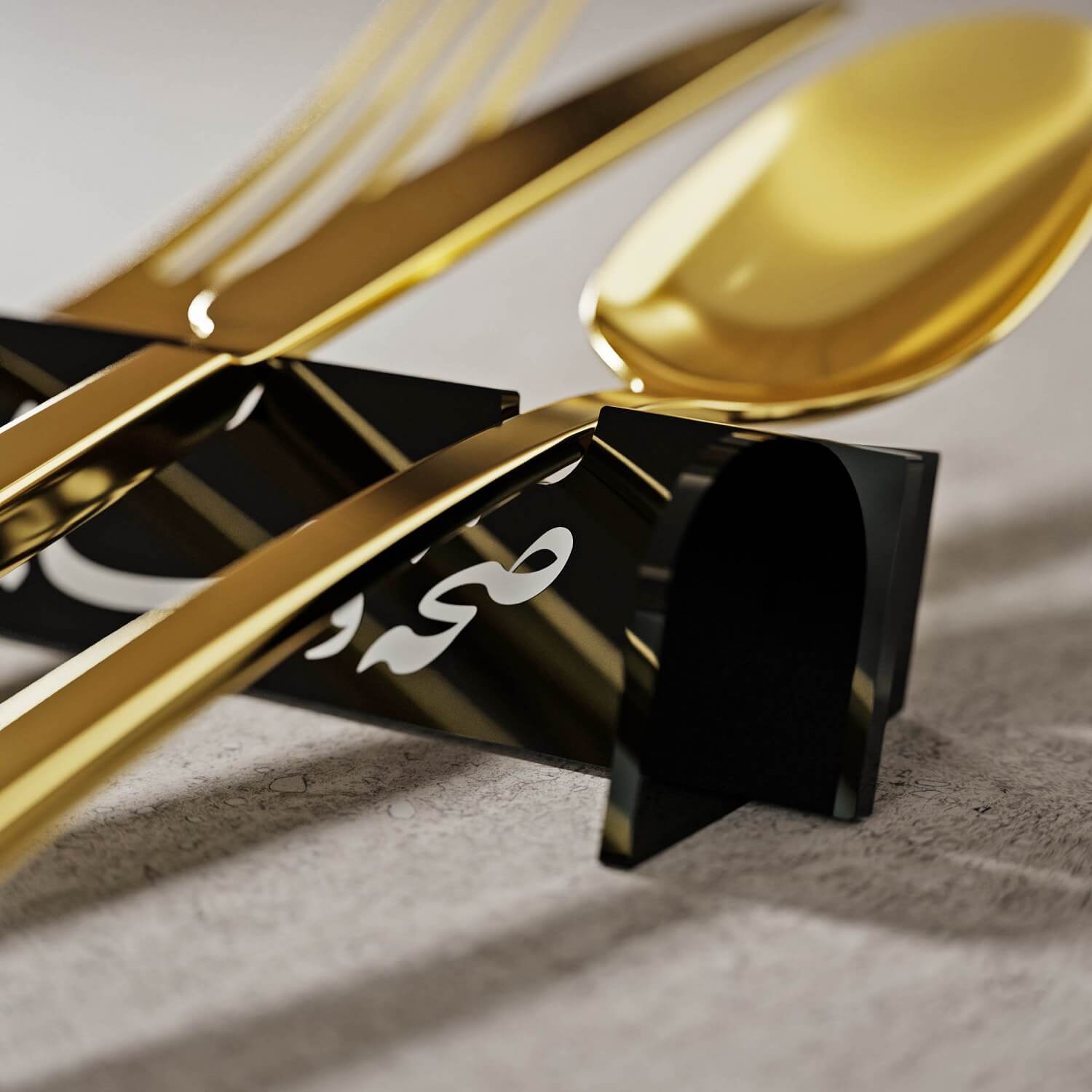 This functional **cutlery rest** keeps your spoons and forks elevated, ensuring your linens stay clean while providing a stunning spiritual and artistic focal point. Its reflective surface catches the warm light of your dining room, creating a brilliant atmosphere for family and guests to enjoy the blessings of **Allah (SWT)**.