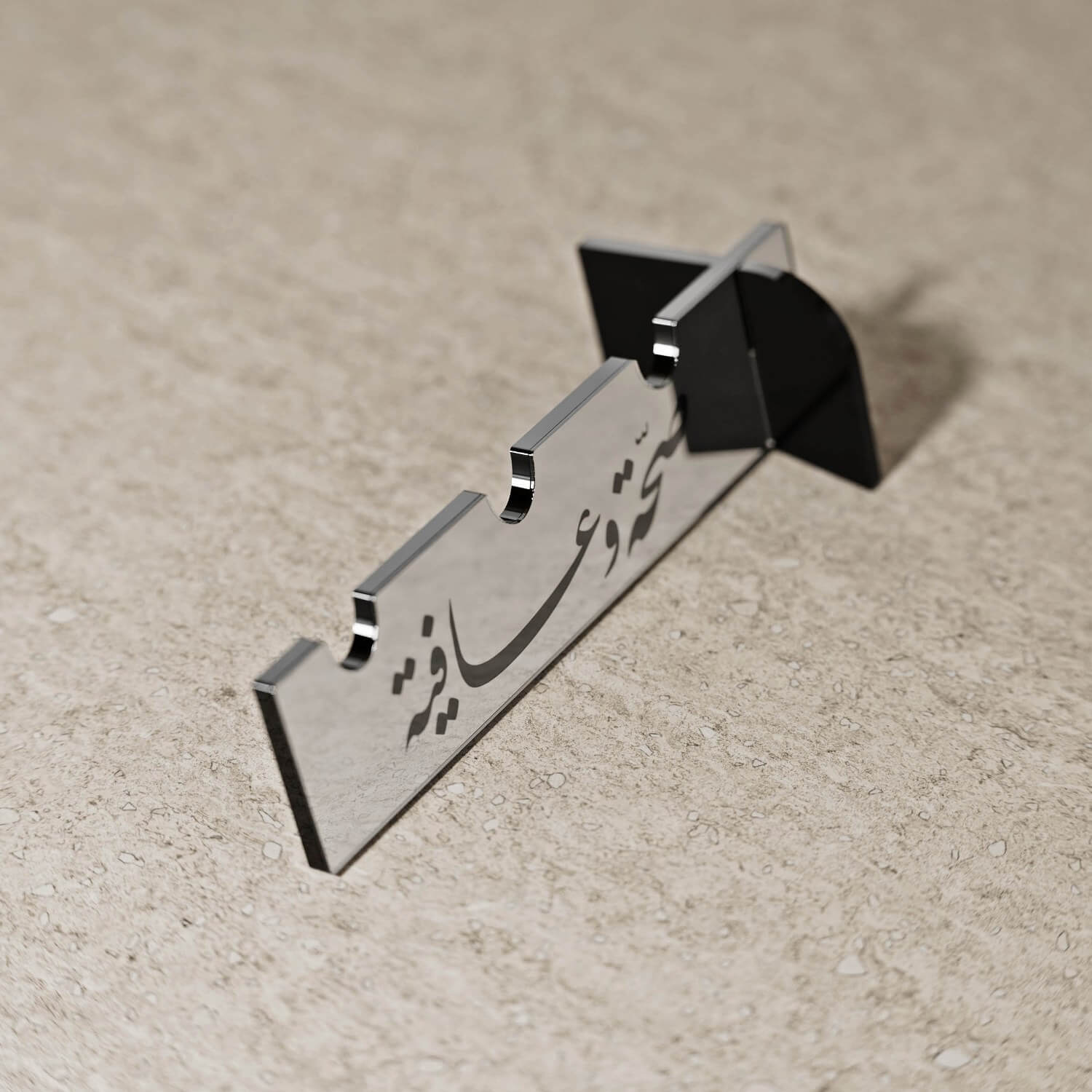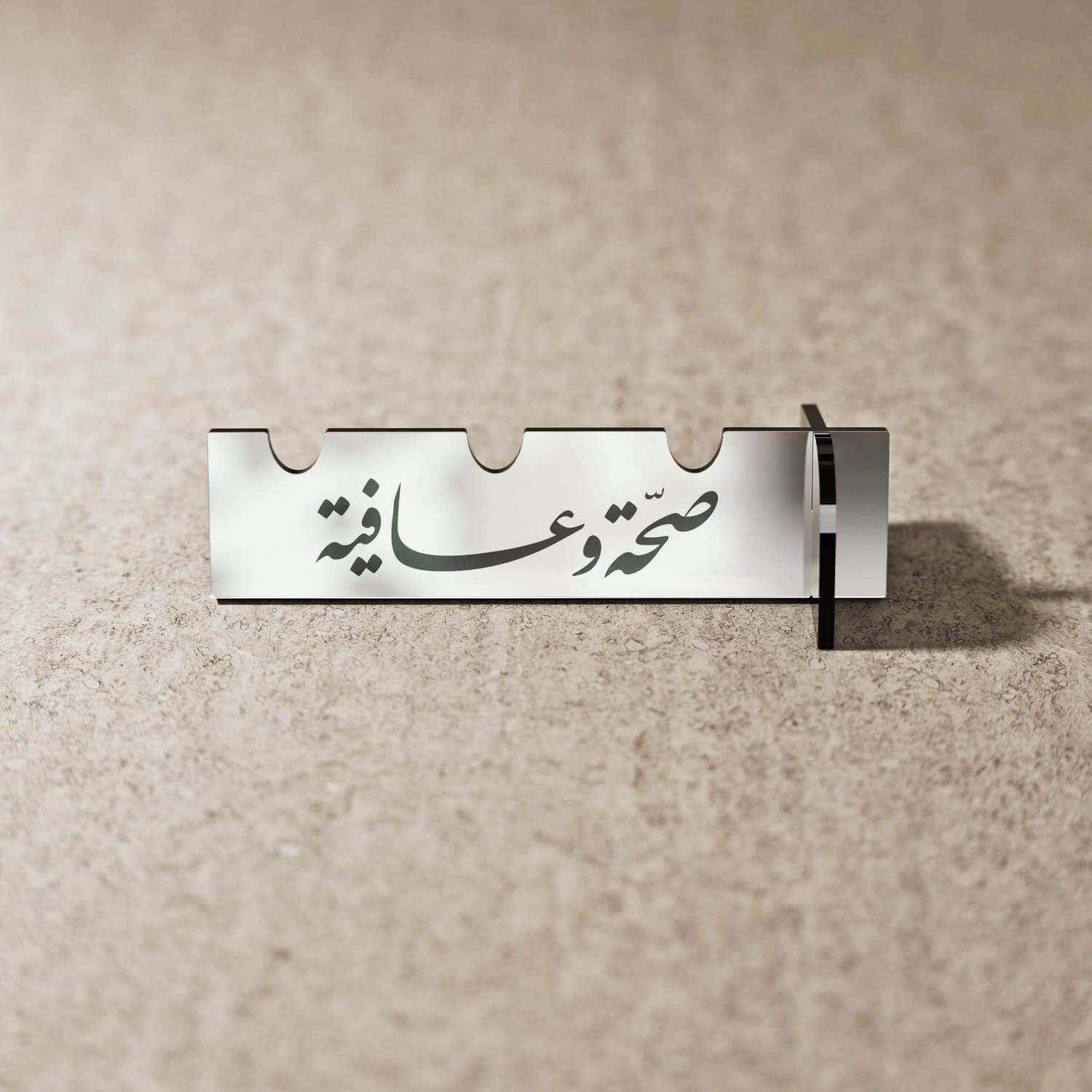 Elevate your **Ramadan dining tables** with our **Saha w Afia Diwani Acrylic Cutlery Holder**. Precision-cut from high-quality **mirror acrylic**, this piece features the traditional greeting *"Saha w Afia"* (Health and Wellness) in the majestic **Diwani script**. Known for its decorative beauty and fluid, intertwined lines, this **arabic** script adds a sophisticated touch to your **iftar table**.