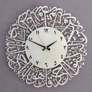 Verleihen Sie Ihrem Zuhause die Wärme und den Reichtum der islamischen Wandkunst „Surah Al Ikhlas“ aus Kupfer, einer Metalluhr, die die Essenz des Glaubens und zeitloser Eleganz verkörpert.
