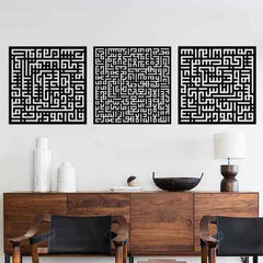 There are wooden, metal, glass, or canvas versions of Arabic Calligraphy Wall Art. They come in different shapes and dimensions to match all houses and different rooms. For example, a stunning,shiny, silver Ayatul Kursi is a piece of Islamic wall art that everyone would like to include in their living areas such as homes or workplaces. An Acrylic/Wooden First Kalima Islamic Wall Art, on the other hand, is one of the first things that Muslim families would like to hang on their walls.
