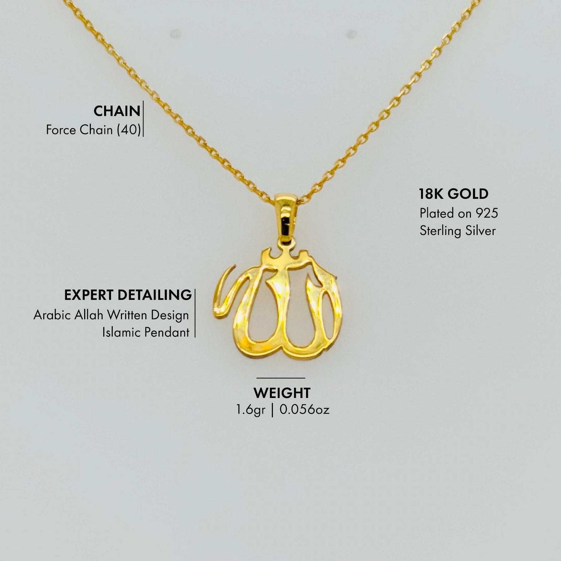 Allah Necklace 18K Gold Plated Silver Pendant - Muslim Jewelry - Islamic Wall Art Store