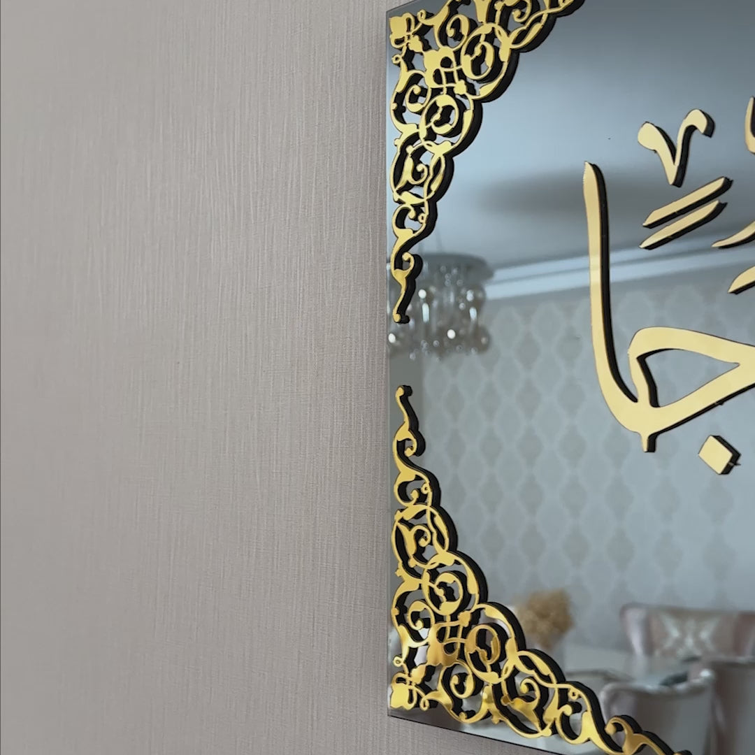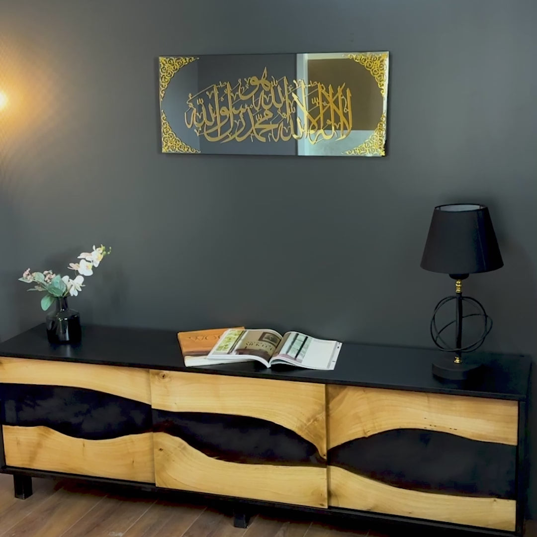 Tauchen Sie ein in die zeitlose Schönheit unserer beliebtesten islamischen Kalligrafie-Dekore – islamische Wandkunst aus gehärtetem Glas, bei denen jeder Strich eine Geschichte von Glaube und Tradition erzählt.