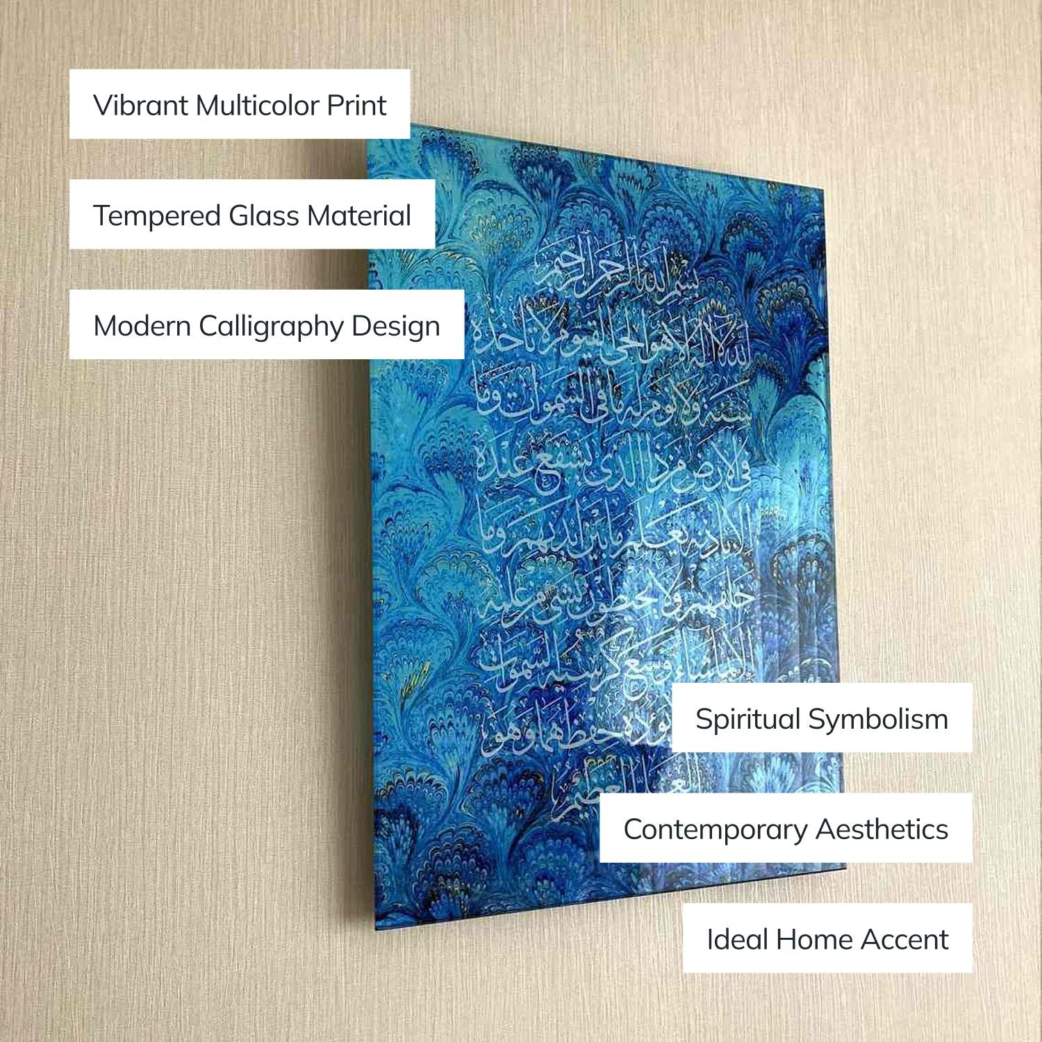 Ayatul Kursi Multicolor Print on Tempered Glass Islamic Wall Art - Islamic Wall Art Store