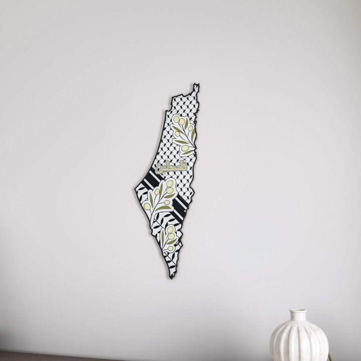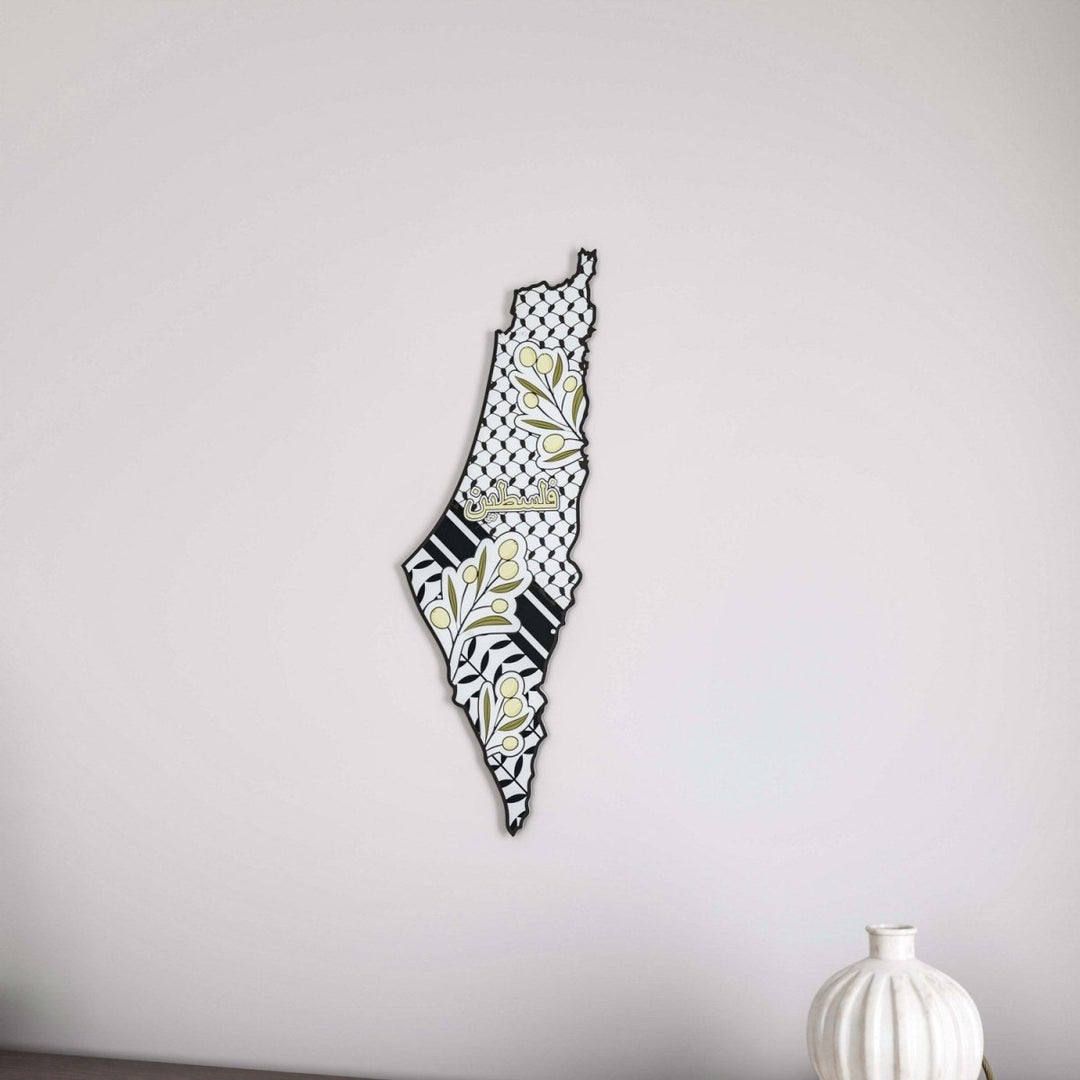 Palestine Map Wall Decor with Cultural Values | Masjid Al Aqsa - Keffiyeh - Olive Branch - Islamic Wall Art Store