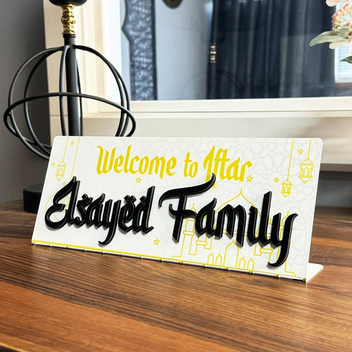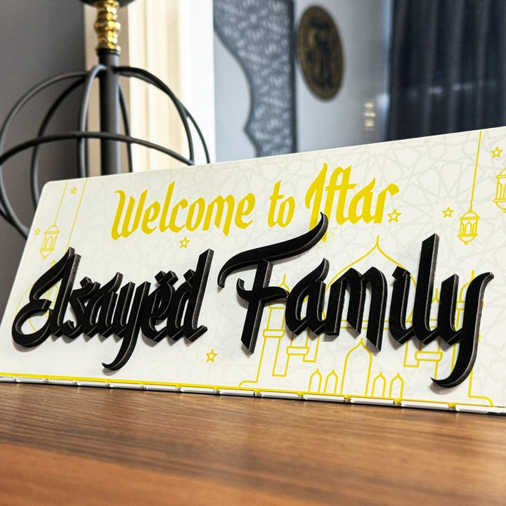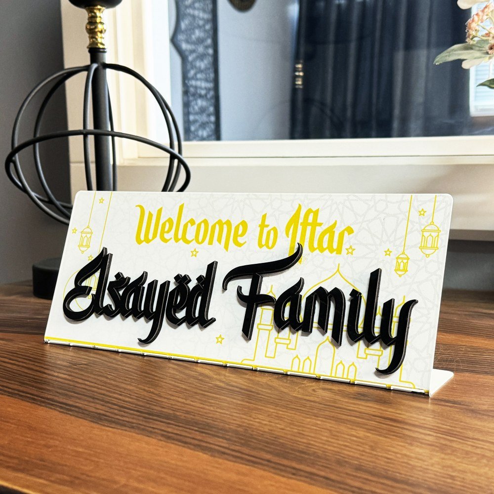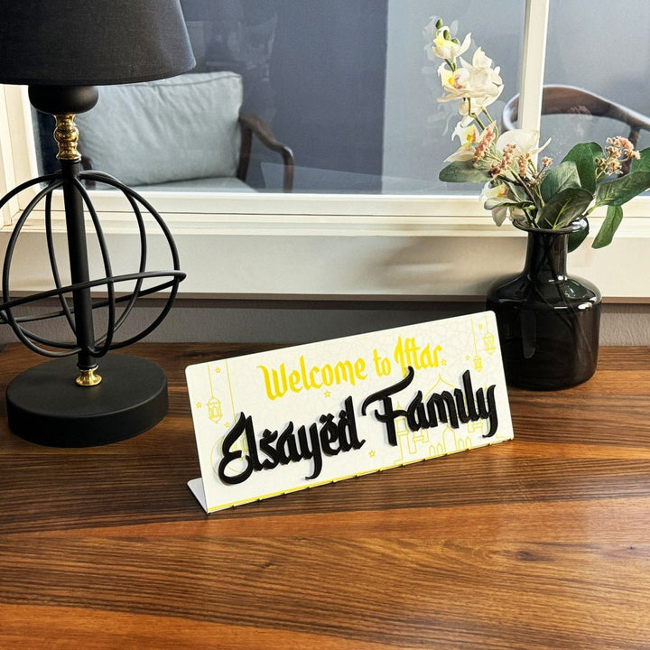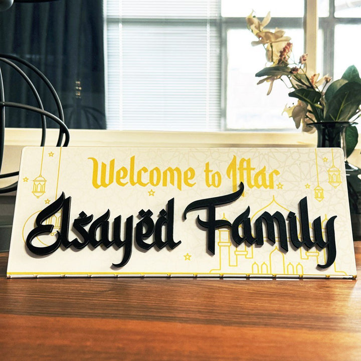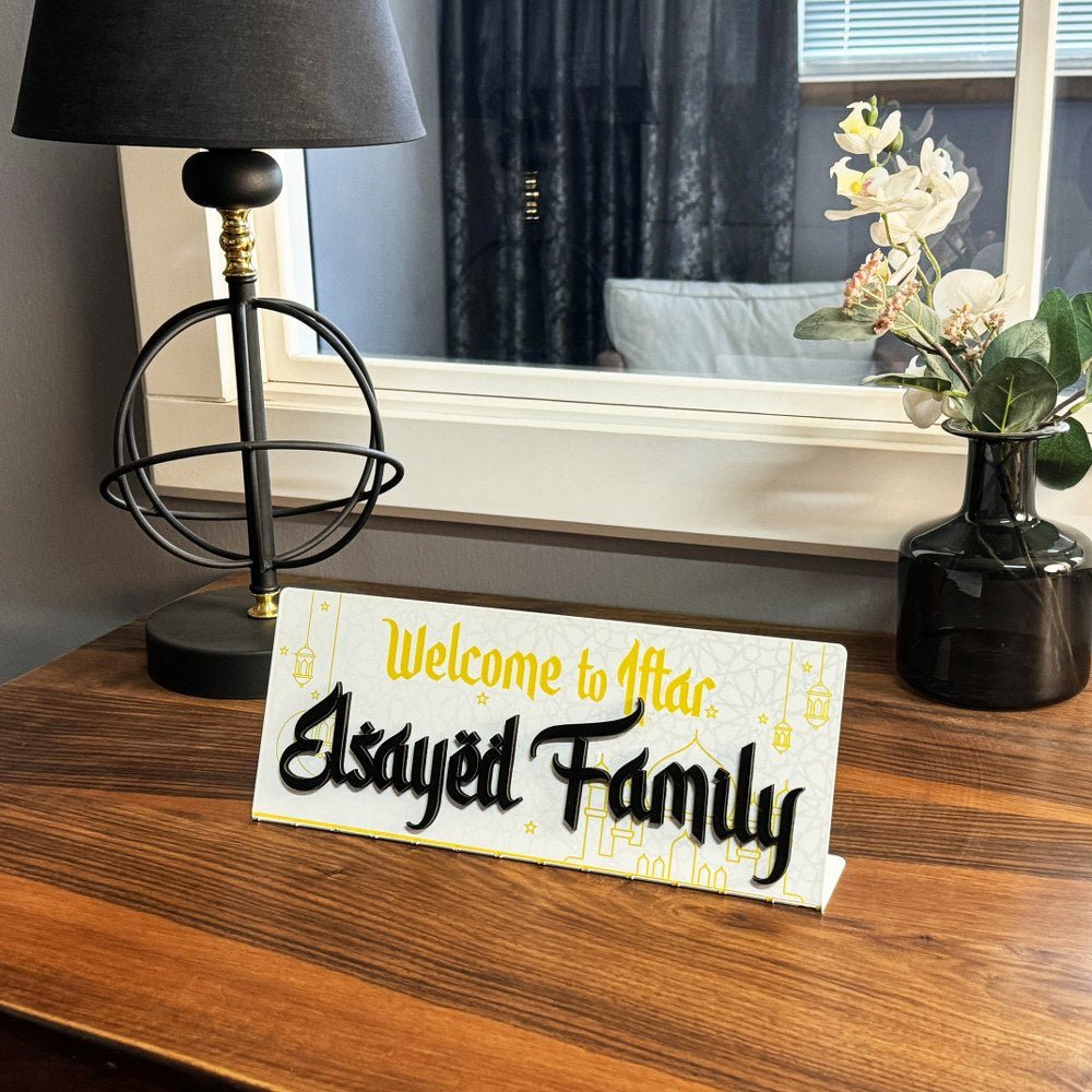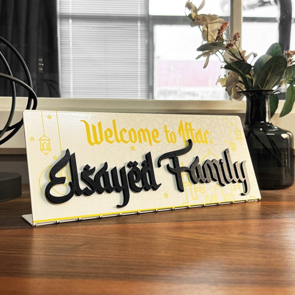 Discover the profound essence of faith elegantly inscribed in our Personalized Last Name Islamic Gift, a stunning metal tabletop decor that marries Islamic calligraphy with modern design.