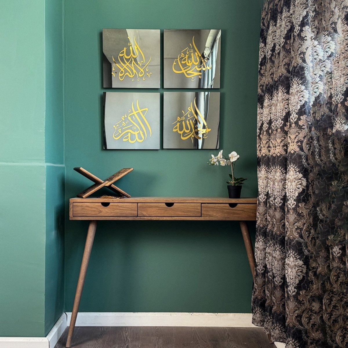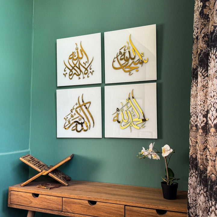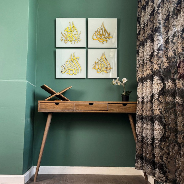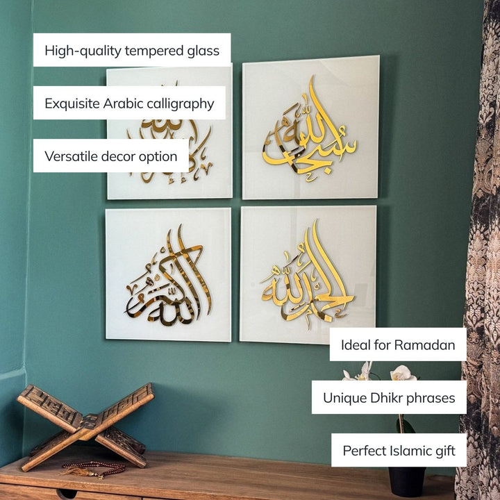 Glass Islamic Wall Art Set, SubhanAllah, Alhamdulillah, Allah Akbar, La ilaha illAllah - Islamic Wall Art Store