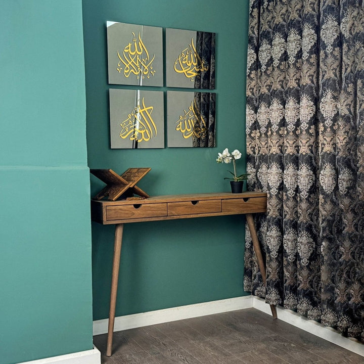 Glass Islamic Wall Art Set, SubhanAllah, Alhamdulillah, Allah Akbar, La ilaha illAllah
