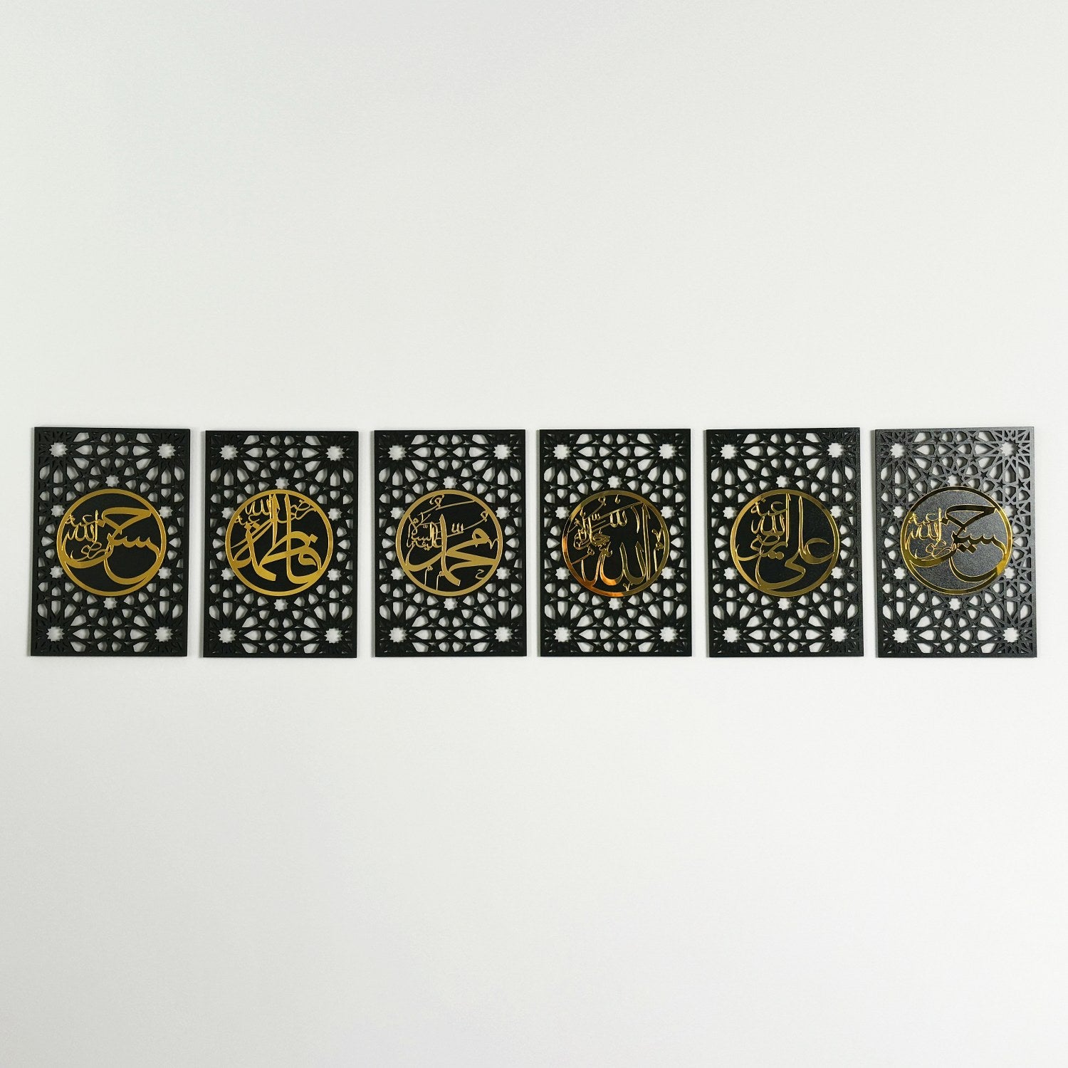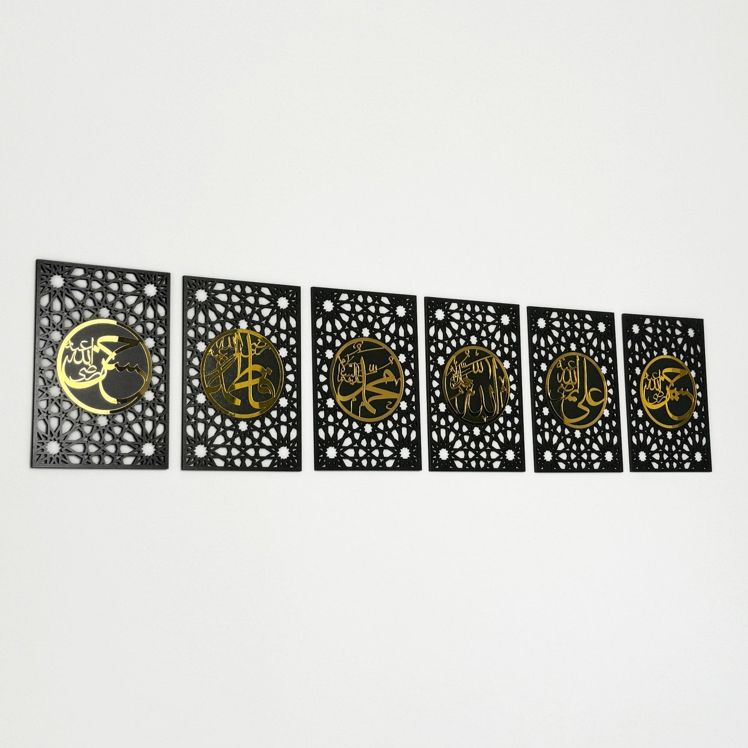 Noms d'Ahl Al Bayt et Panjtan Pak - Calligraphie arabe | Ensemble d'art mural islamique - 6 pièces