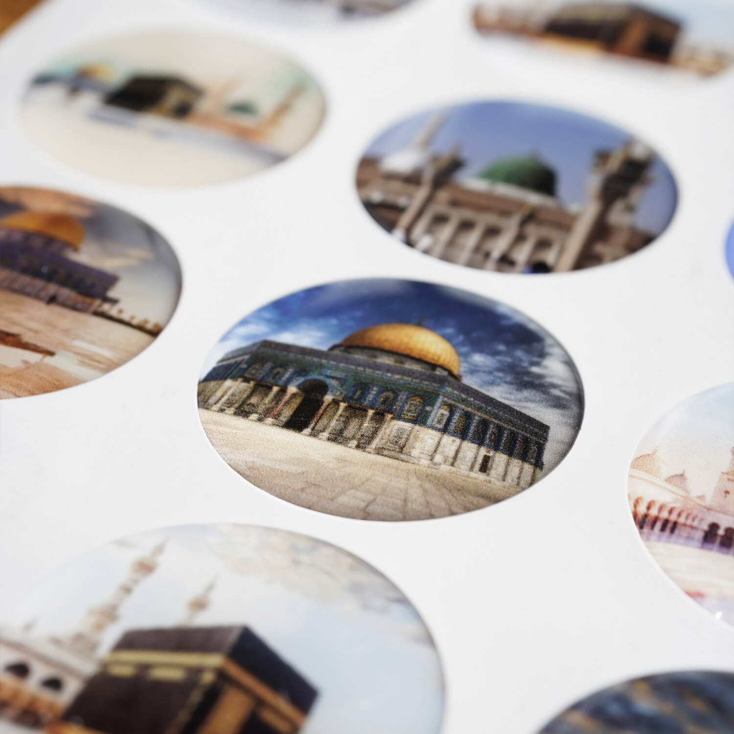 Ensemble d'autocollants pour les lieux saints islamiques – Kaaba, Masjid an-Nabawi et Masjid al-Aqsa