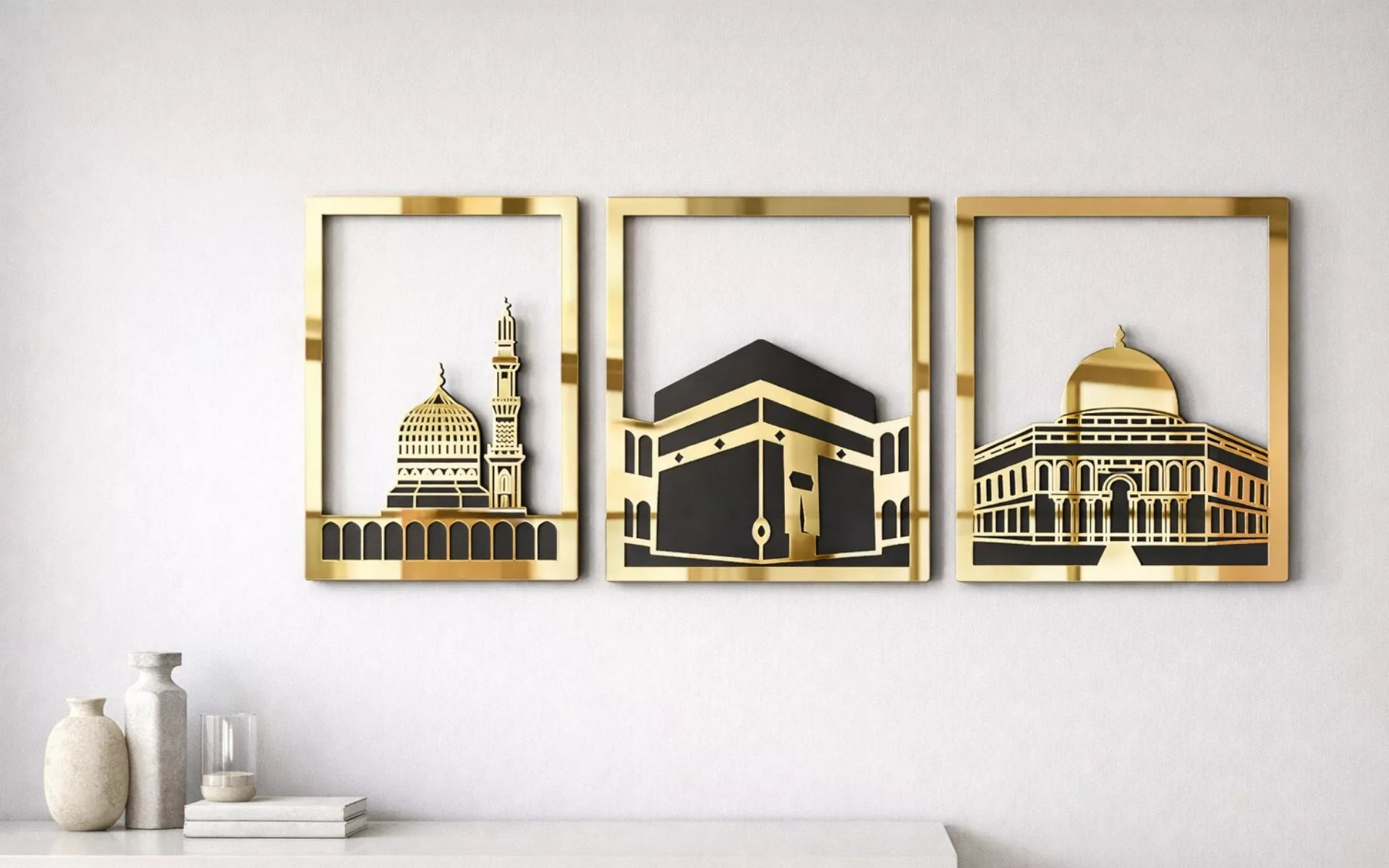 Les trois mosquées sacrées – la Kaaba, la Mosquée du Prophète et la Mosquée Al-Aqsa – incarnent le cœur du patrimoine islamique. Notre collection propose des décorations murales et des peintures de la Mosquée Al-Aqsa, conçues pour recréer chez vous l'atmosphère spirituelle de ces sanctuaires. De l'unité de la Kaaba à la sérénité de la Mosquée du Prophète, chaque œuvre est un rappel visuel de la foi.