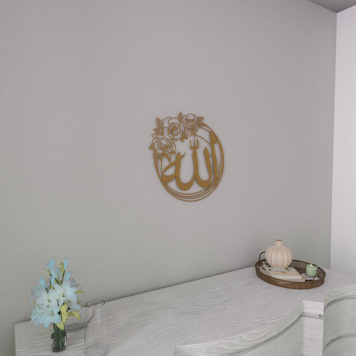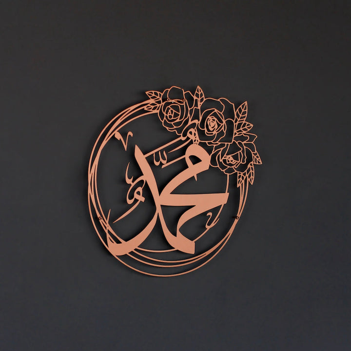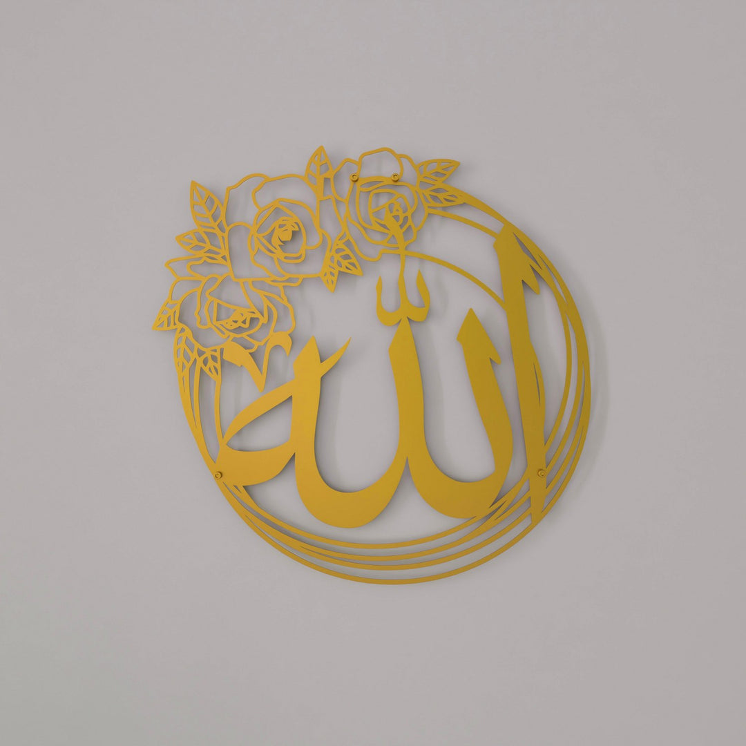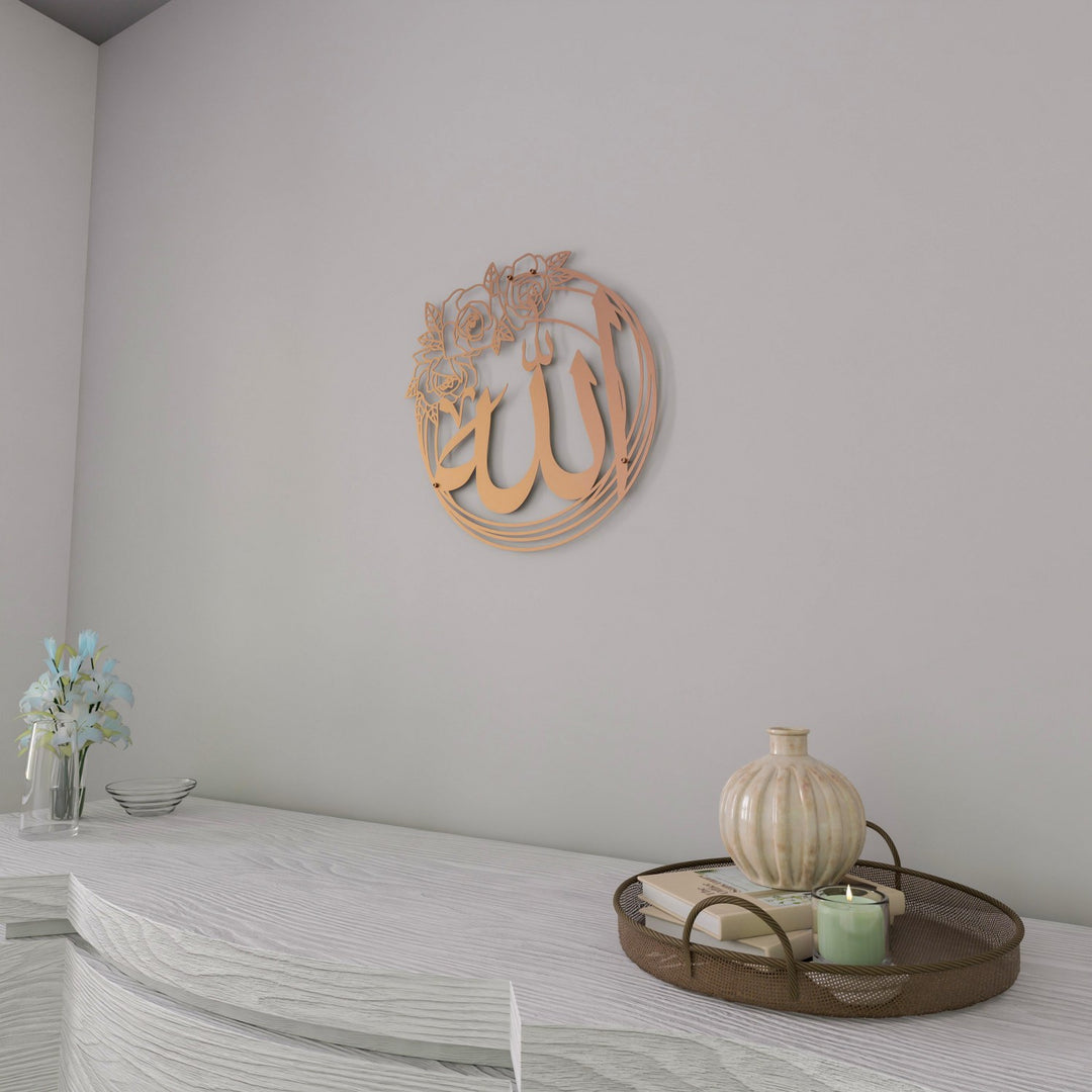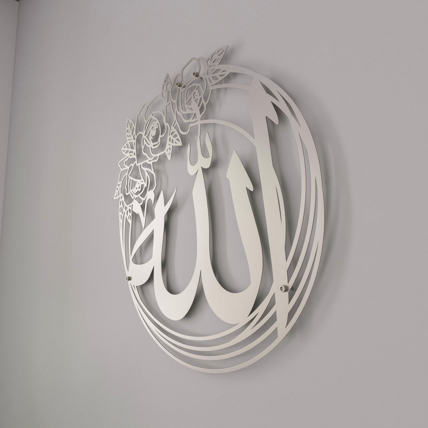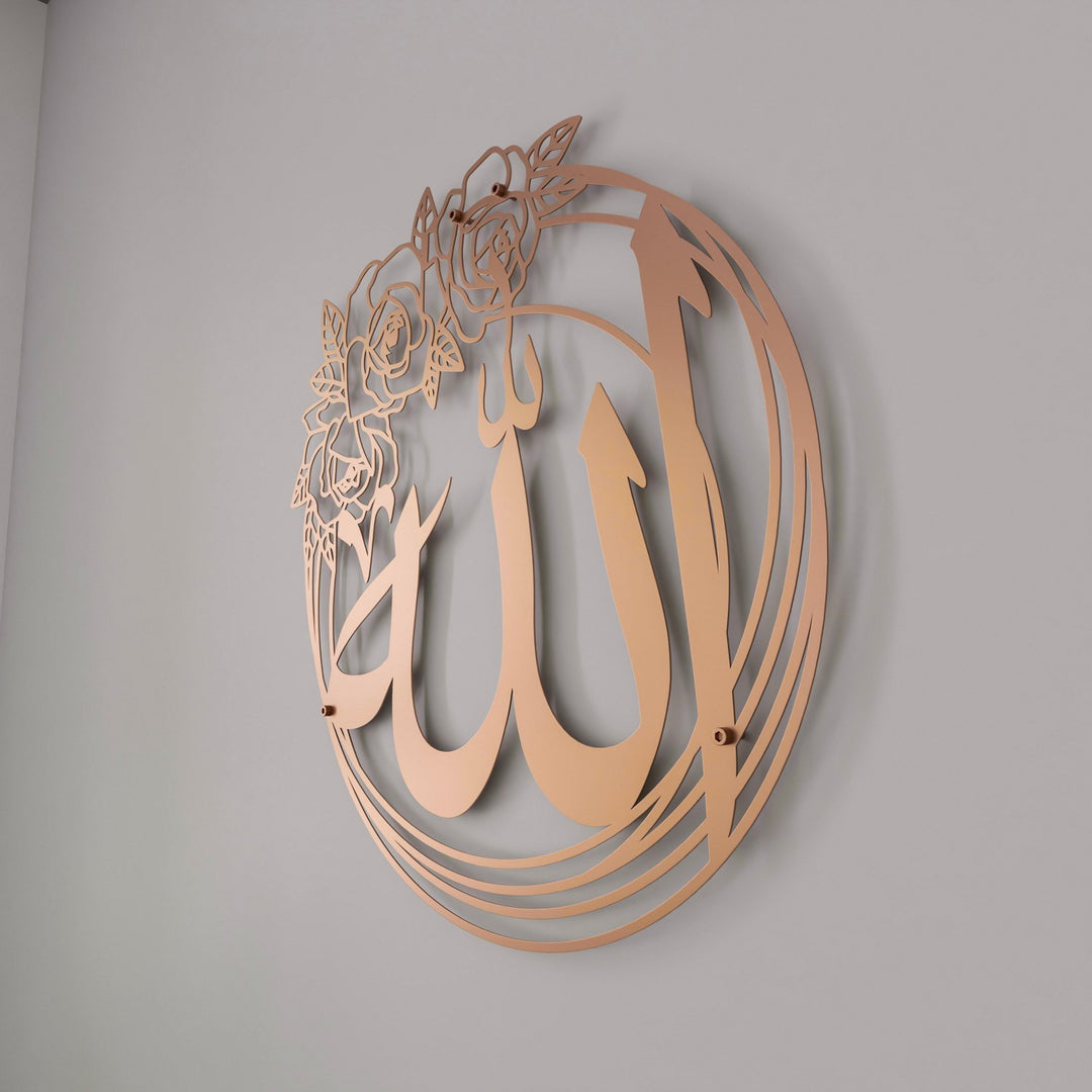 Ajoutez une touche d'élégance et de beauté spirituelle à votre maison avec l'art mural islamique en métal Allah (SWT) et Muhammad (PBUH) avec motif rose.