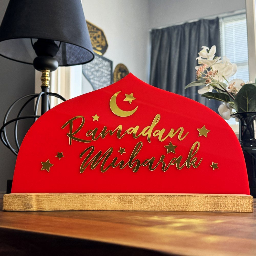 Célébrez l'esprit du mois sacré avec la décoration de table cadeau islamique Ramadan Mubarak , un chef-d'œuvre qui tisse l'élégance de la calligraphie islamique dans votre vie quotidienne.