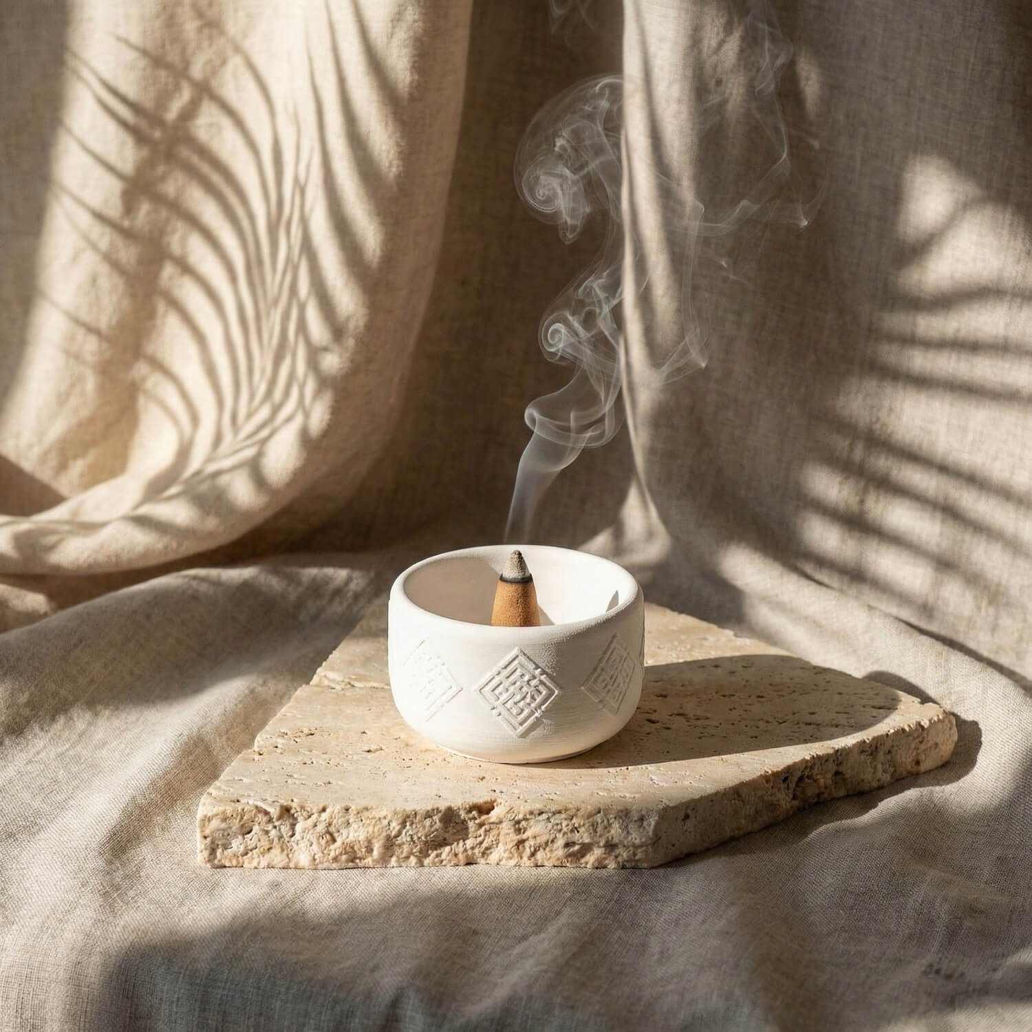 4 Dhikr Stone Cast Mabkhara – Geometric Kufic Incense Burner