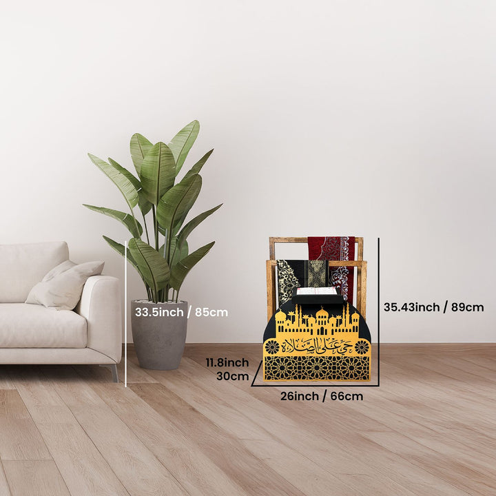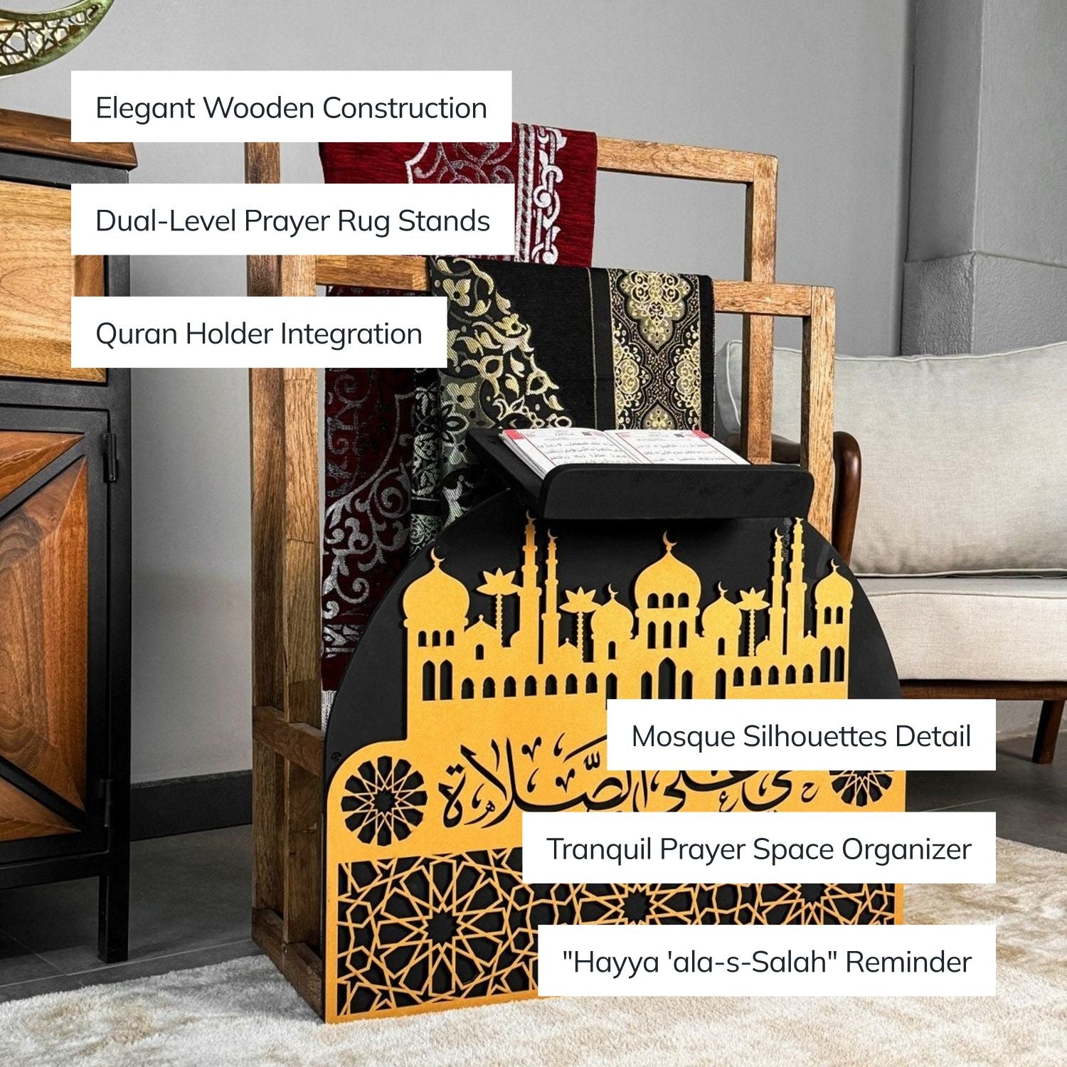 Améliorez votre salle de prière avec notre magnifique support de tapis de prière en bois fabriqué à la main, un témoignage de dévotion et de savoir-faire.