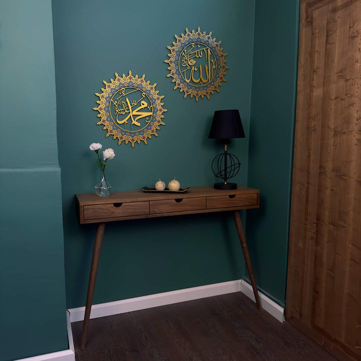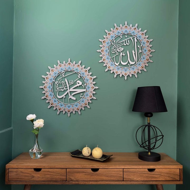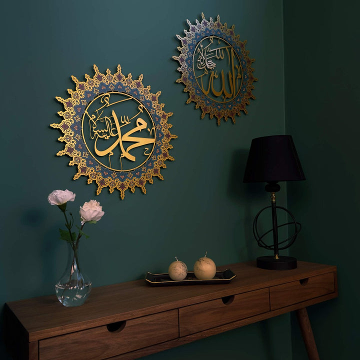 Allah (SWT) and Muhammad (PBUH) UV Printed Metal Islamic Wall Art Set - Islamic Wall Art Store