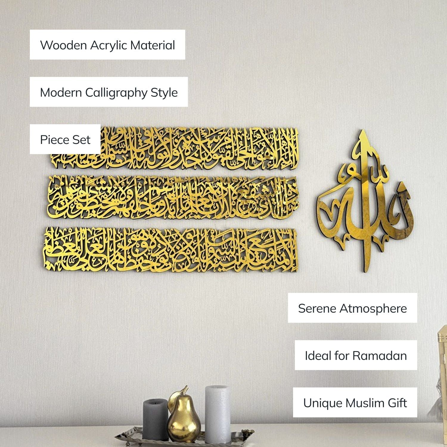 Ayatul Kursi Calligraphy 4 - Piece Wooden Acrylic Islamic Wall Art Set - Islamic Wall Art Store