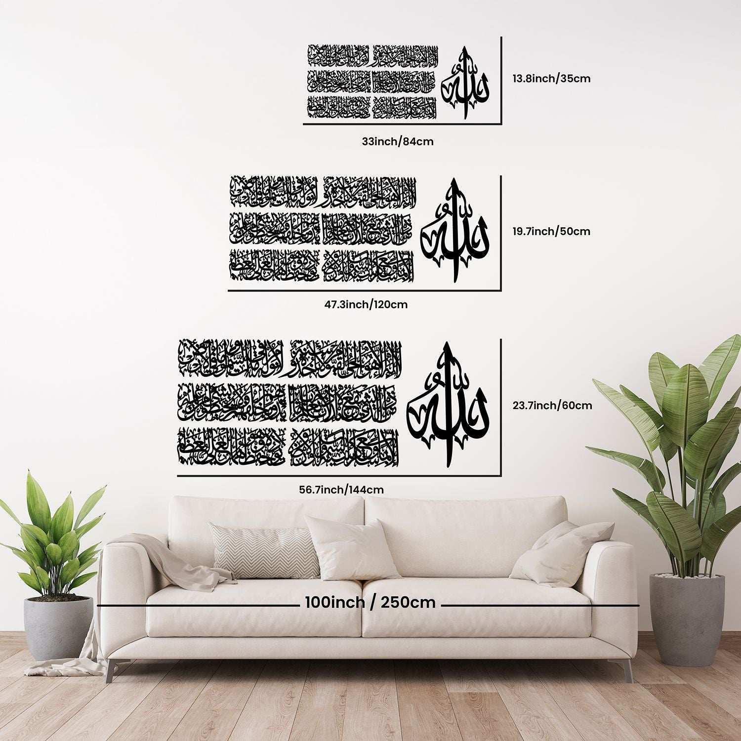 Ensemble de calligraphie Ayatul Kursi - Décoration murale islamique en bois et acrylique | 4 pièces