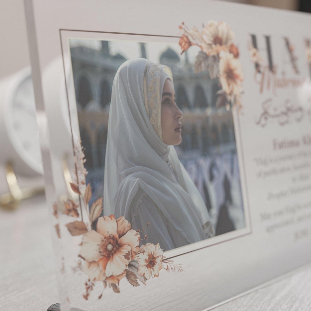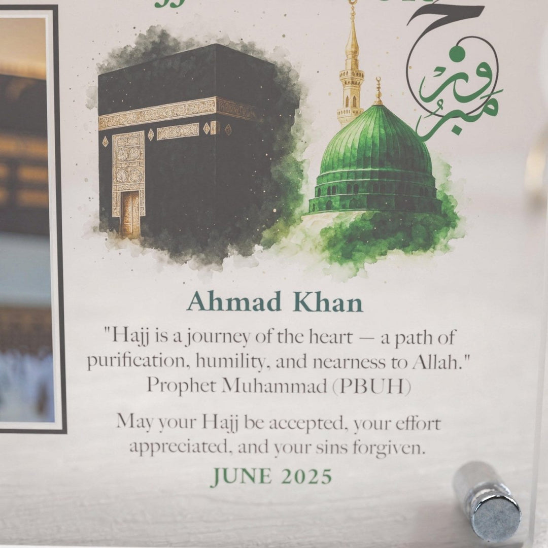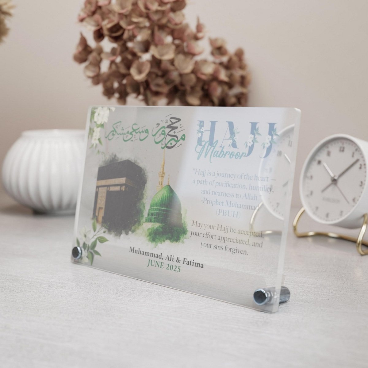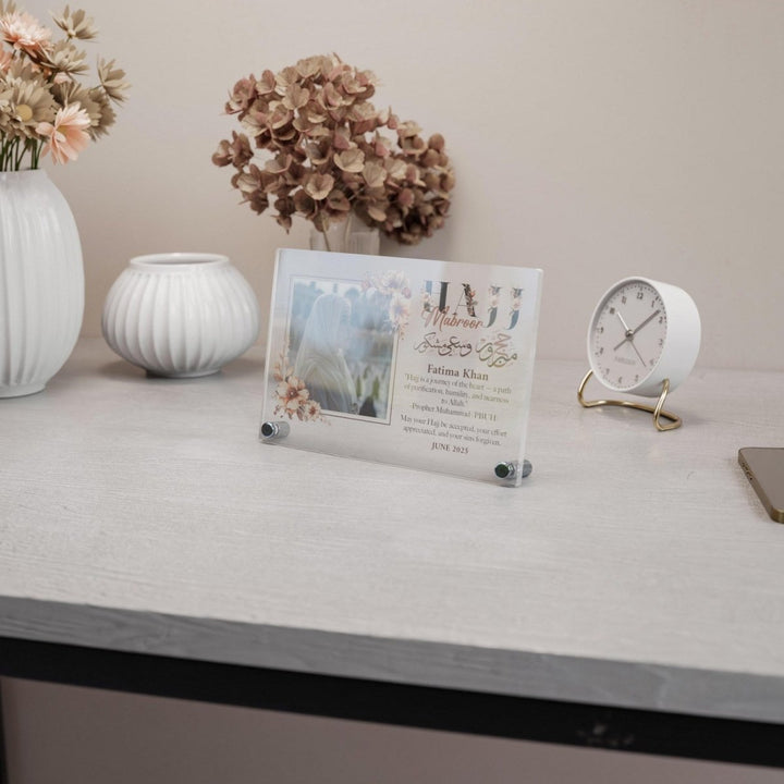 La décoration de table Mabroor personnalisable pour le Hajj est un chef-d'œuvre unique qui apporte l'essence spirituelle du Hajj à votre intérieur. Personnalisez cette décoration de table pleine de sens avec votre texte et votre photo, pour des souvenirs inoubliables du Hajj. Parfaite pour une décoration d'intérieur islamique, elle présente un design esthétique et élégant grâce à la technologie d'impression UV. Qu'elle soit un symbole de l'accomplissement du Hajj ou un rappel quotidien des jours du Hajj, cette pièce apporte une touche de profondeur à votre intérieur.
