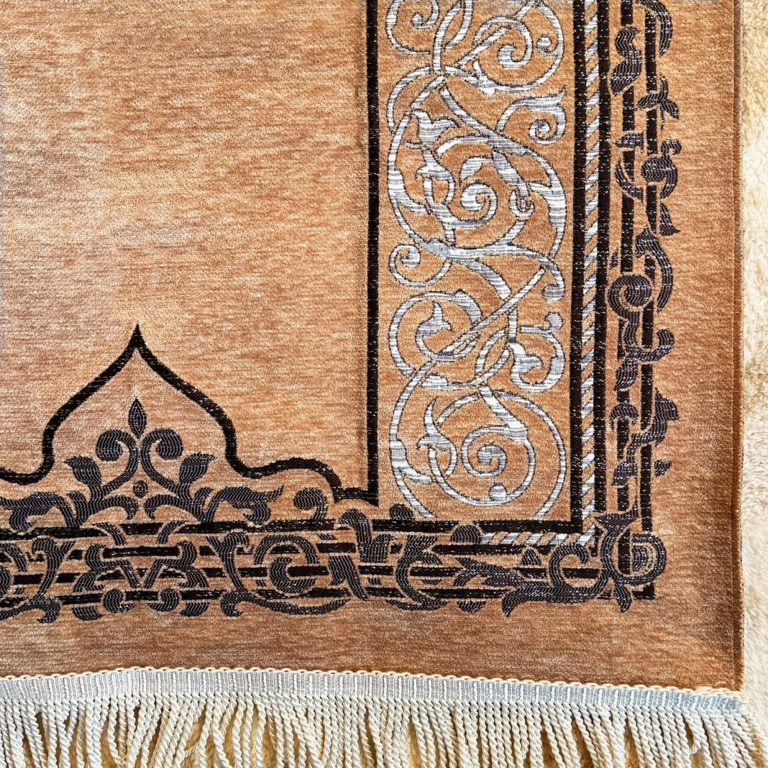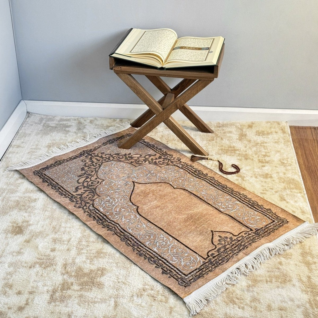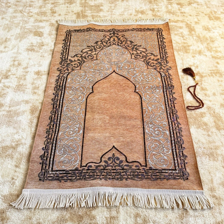 Muslim Prayer Rug and Beads Set, Brown - Islamic Wall Art Store