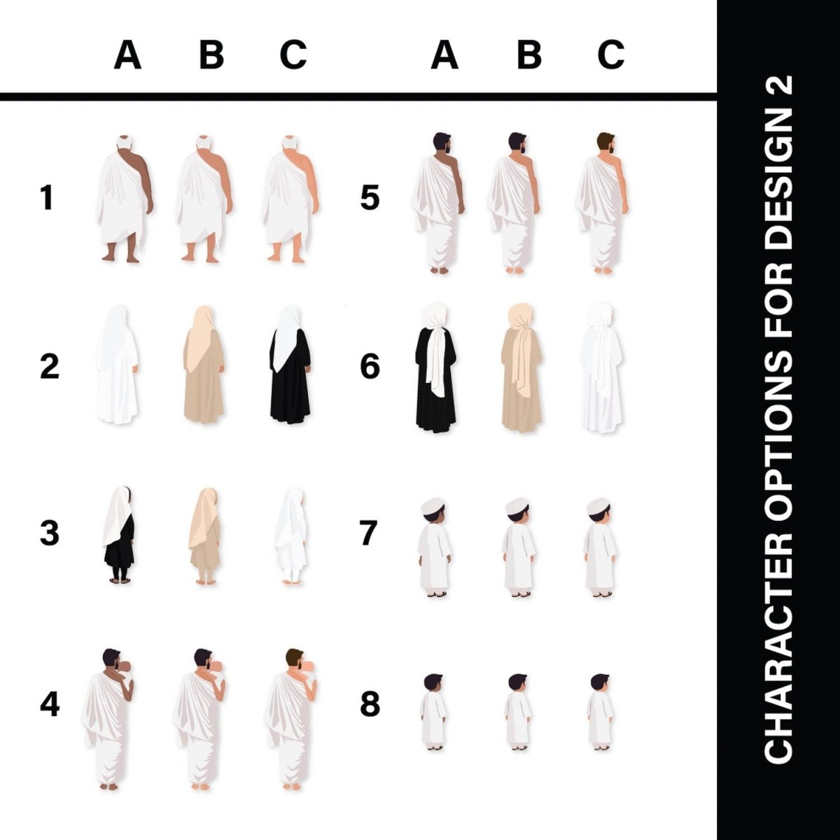 For Design-2, please specify the person character images by selecting them from the infographic image. For example; 1A (Name), 2C (Name), 6B (Name), ...