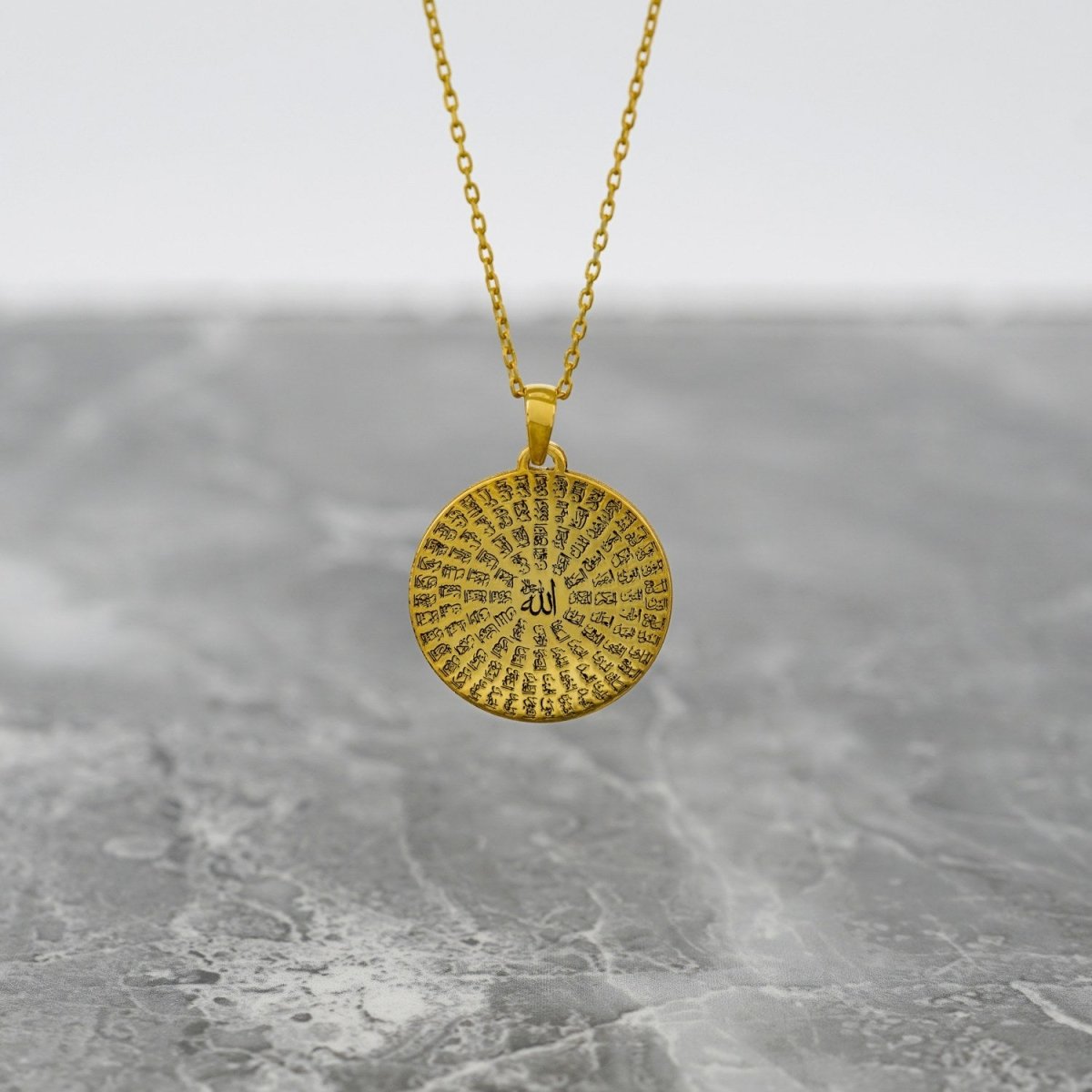 Islamic Necklace - Asma Ul Husna 18K Gold Plated Silver Pendant - Islamic Wall Art Store