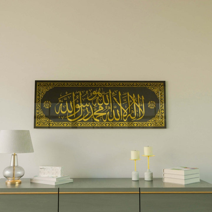 Kalima Tawheed with Huwa Tempered Glass Islamic Wall Art - Islamic Wall Art Store